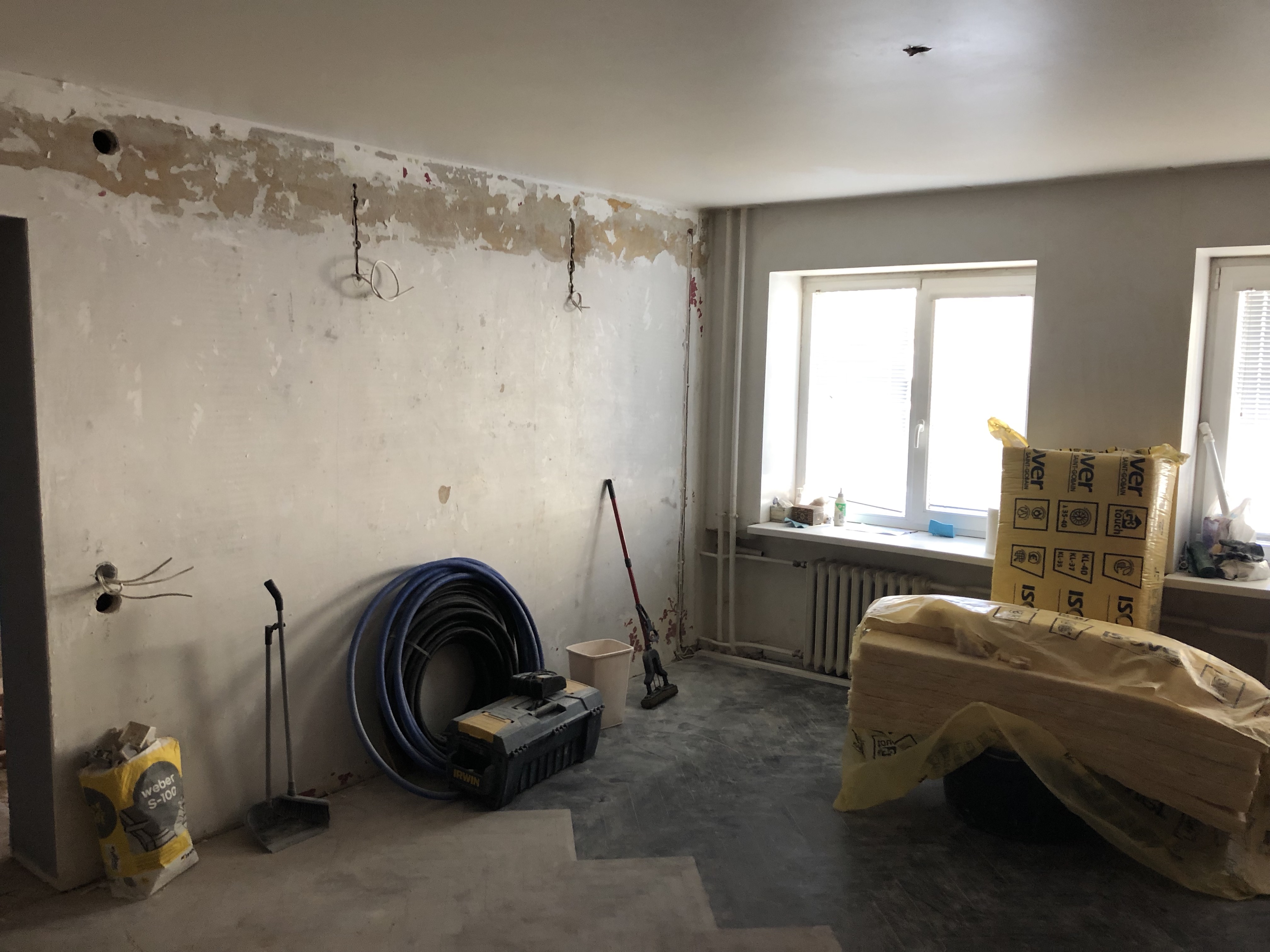 krohvida, pahteldada ja värvida. Betoonist lagi vajab samuti pahteldamist ja värvimist. vana tapeet on seintelt maha kisutud.