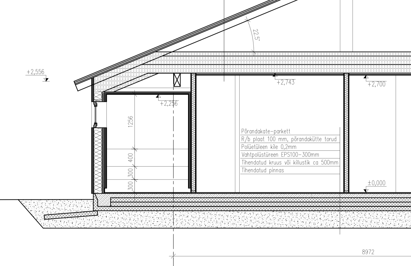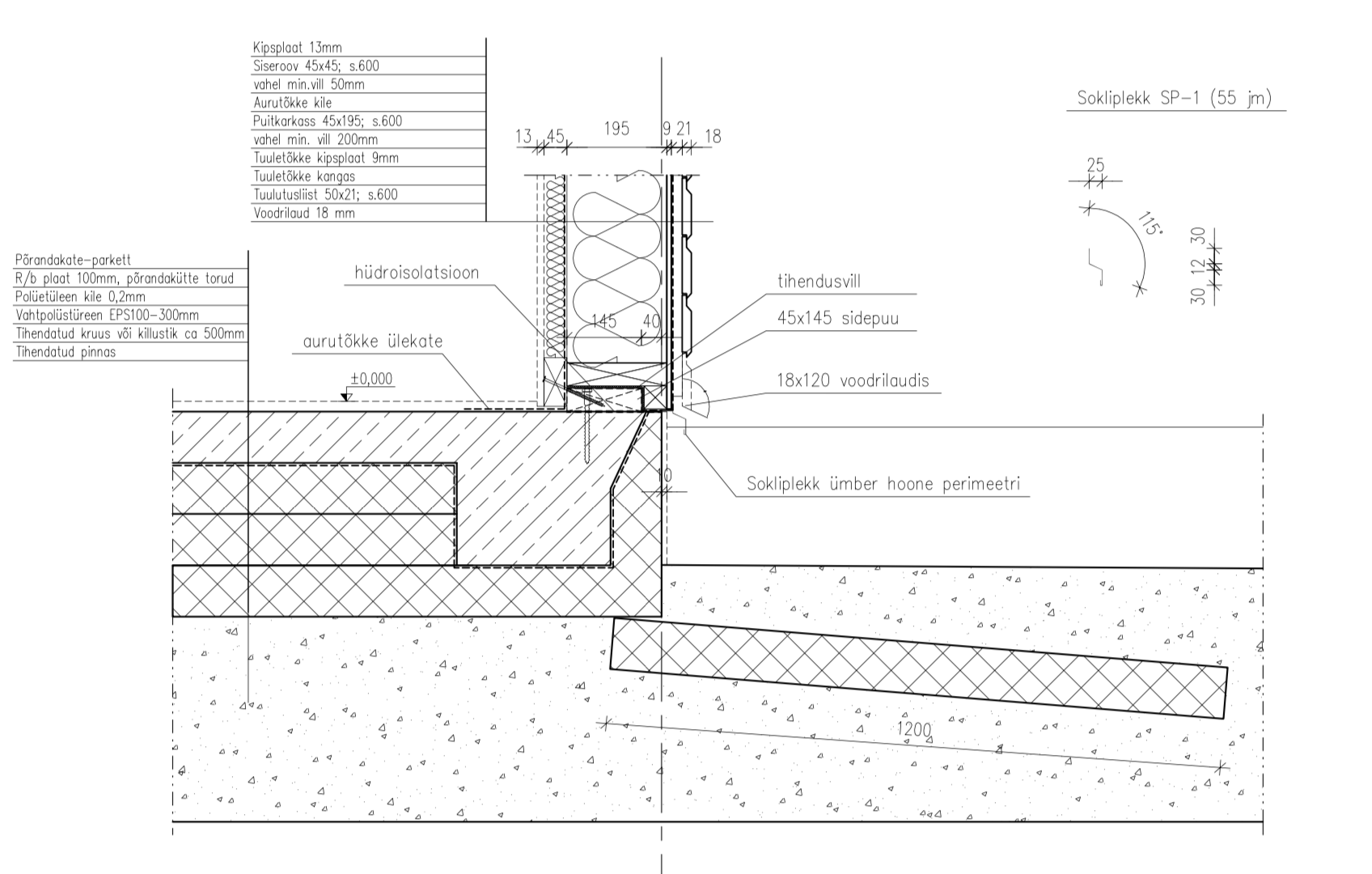 Põrandad tehakse monoliitsest raudbetoonist paksusega 100 mm. Põrandaplaadi alla paigaldatakse polüetüleenkile 0,2 mm ja vahtpolüstüreenplaadid EPS100 paksusega 300 mm. Põranda alune tagasitäide tehakse kruusa või liivaga. Tagasitäide tihendatakse iga 20 cm kaupa.