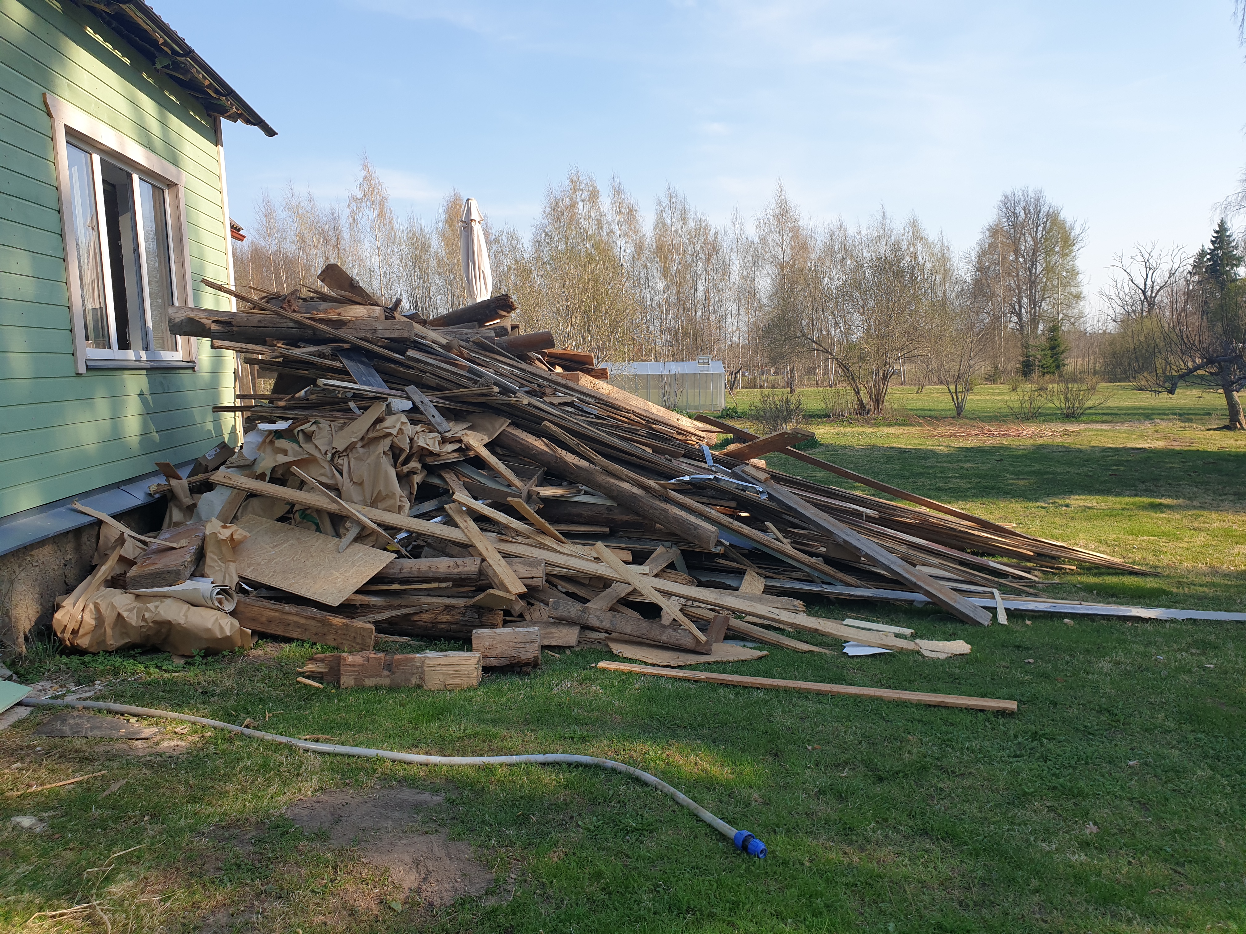 Vanas majas sai laudpõrand välja lõhutud ning nüüd oleks vaja selle materjal ära viia. Põranda pinda oli umbes 100m2. Vana materjal on ühes hunnikus.