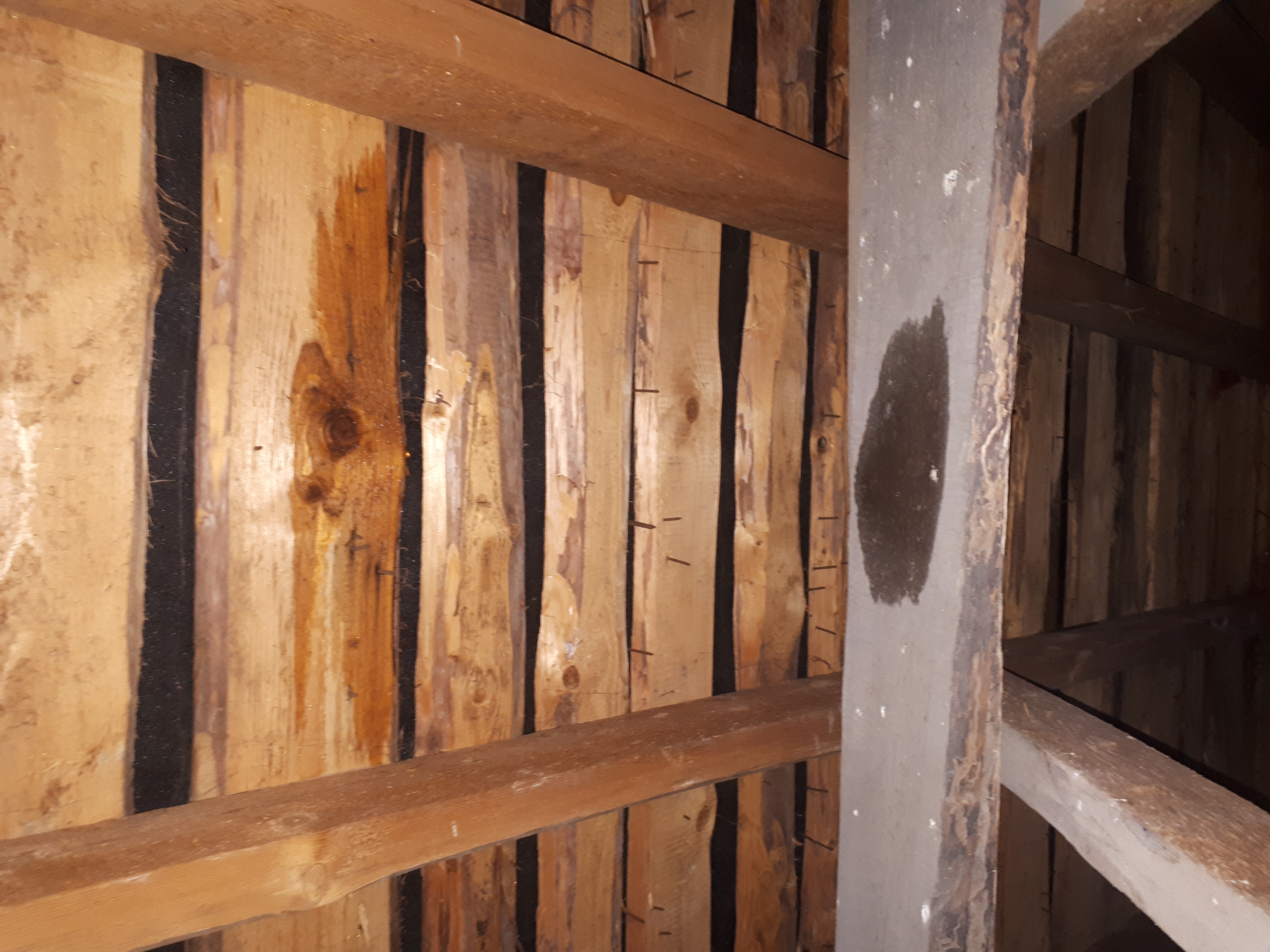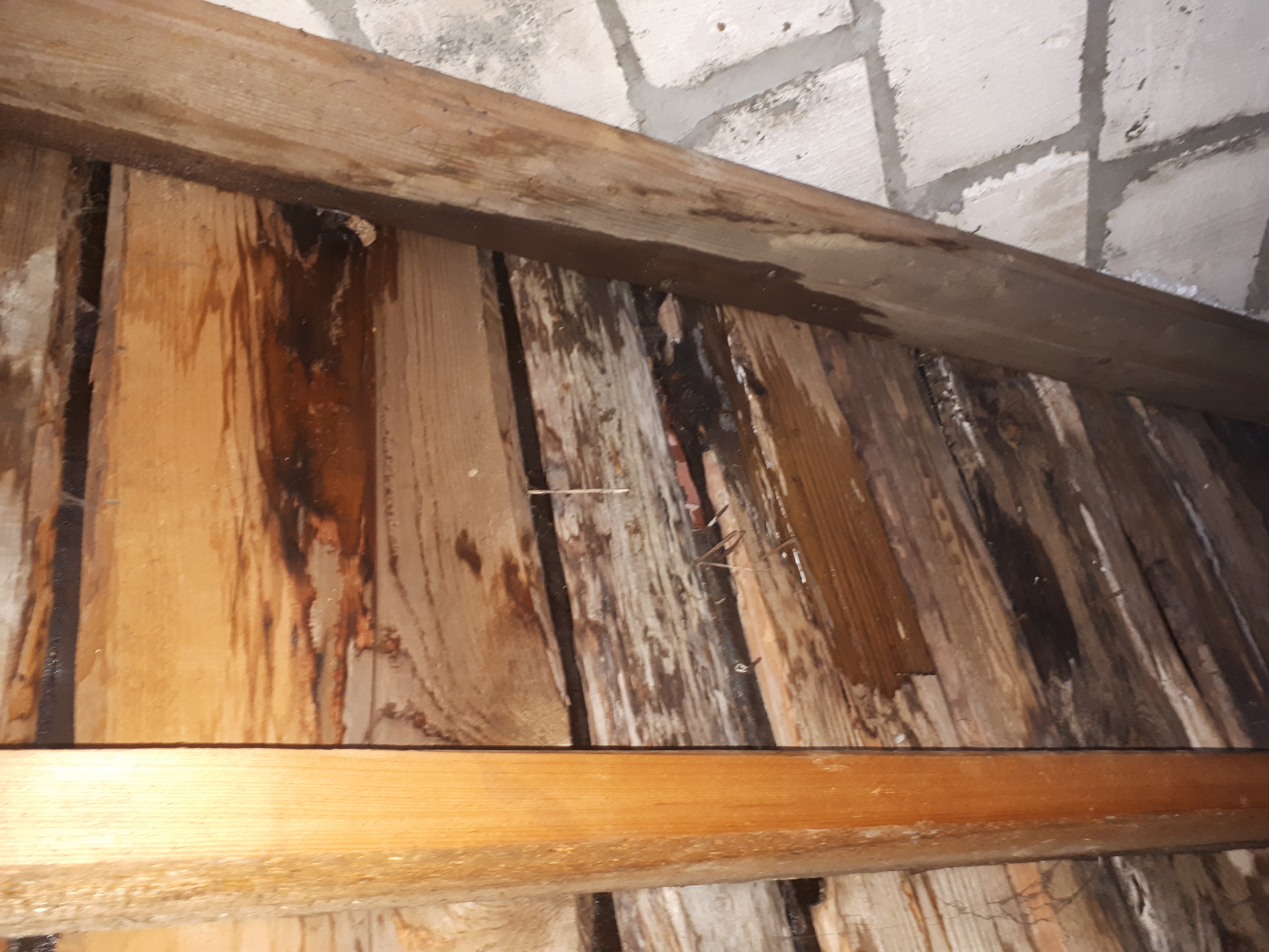 2. Vanas aluslaudises on ühes kohas (katuse serv kohe) kahjustus, vaja natuke laudu välja vahetada ~10m2 ja võimalik et paarile sarikale lisatoestuse lisamine.