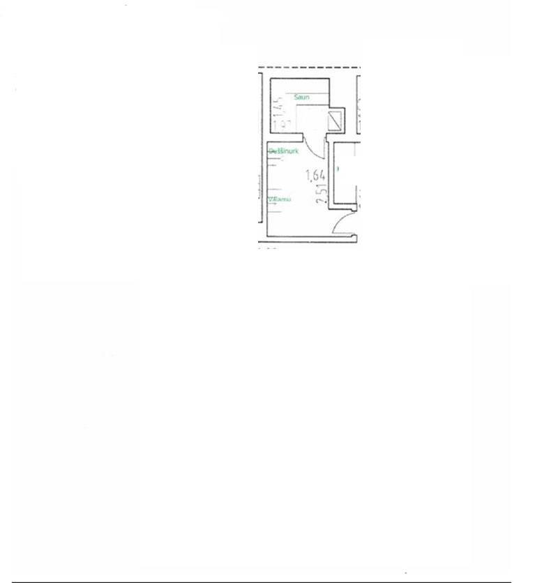 Vannitoa pindala 4,5 ruutu ja sauna pindala 2,9 ruutu