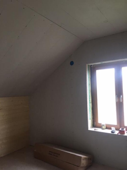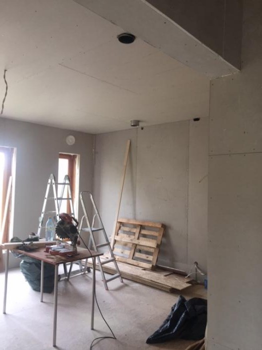 Uus korter vanas majas, kipsitööd just lõppesid ja seinad-laed ootavad pahtlit-värvi. Kipsplaat on kinnitatud osb plaadile nii seintes kui lagedes (mitte kipsikarkassile).