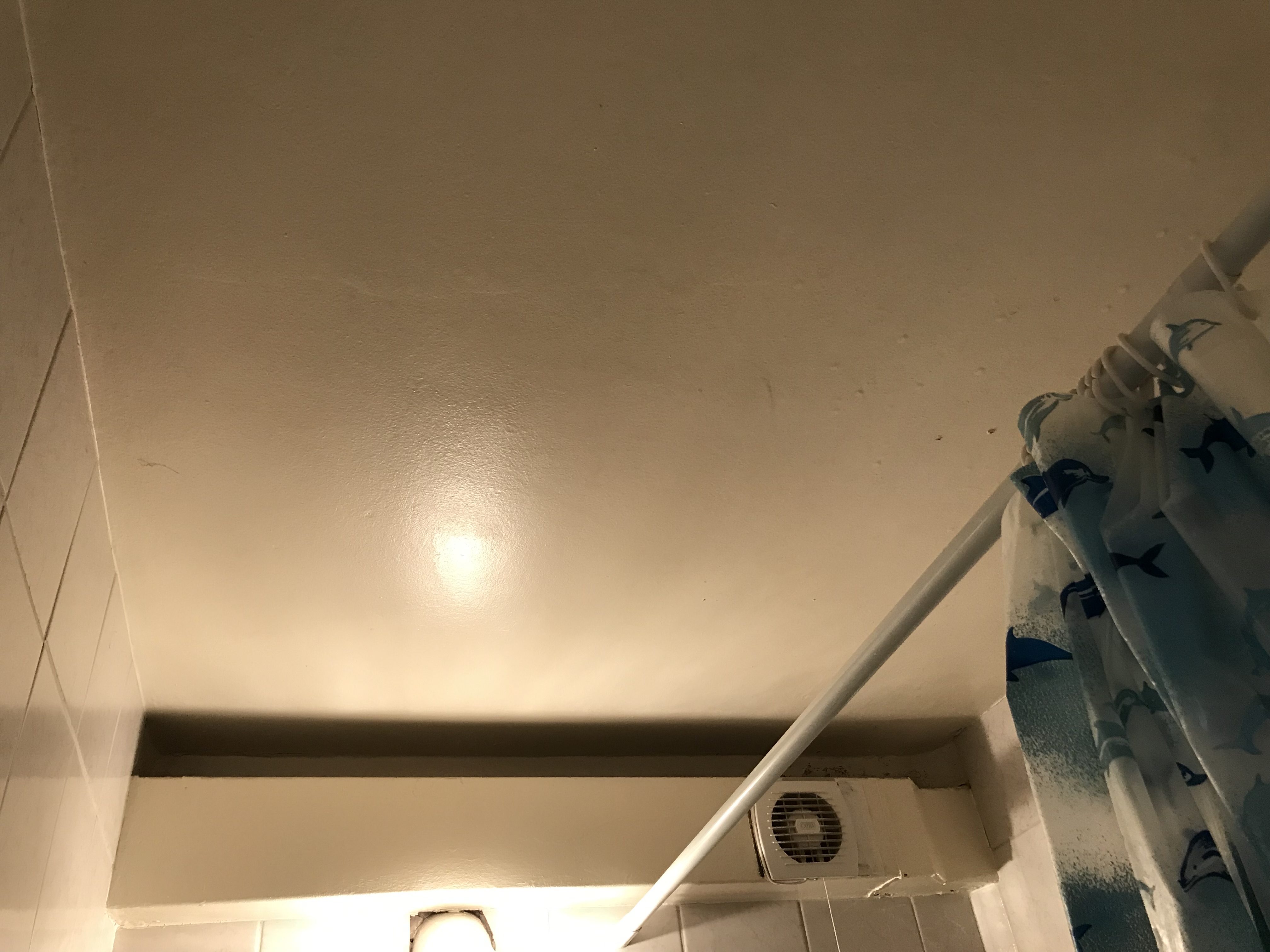 Vannitoas on kõik seinad laeni plaaditud, lagi värvitud, vann.