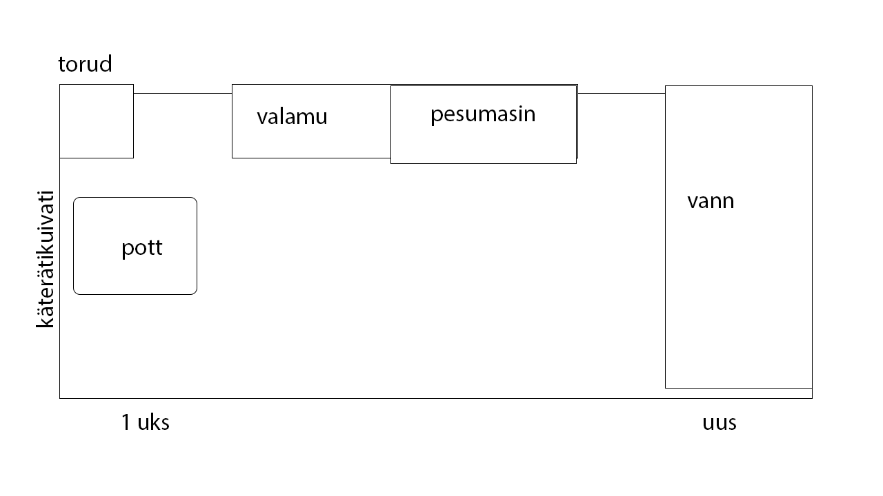 Hetkel torud on kõik lahtised ja võimalusel oleks hea, kui need saab ka ära peita (aga peaks jääma ligipääs veearvestitele). Lisaks häirib hetkel, et nurgad ei ole täisnurksed vaid kaardus.