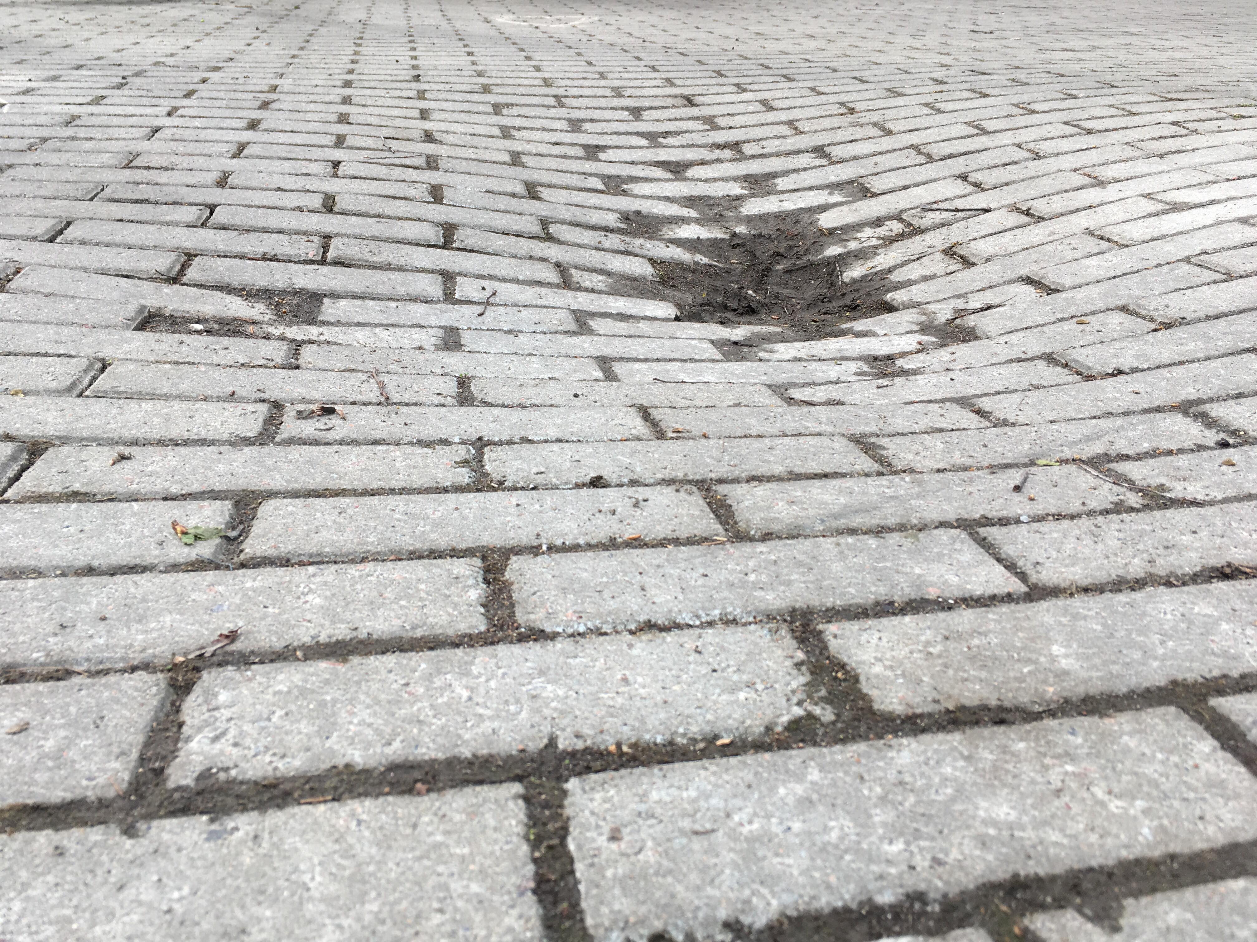 Parkimisplatsi kivisillutisse on sisse vajunud auk. Oleks vaja täita auk ning taastada kivisillutis. Augu mõõtmed u 60x40cm ning sügavus 10-15cm. Sellele lisaks oleks vaja taastada 2 madalamat sissevajumist, mis on põhjustatud auto raskusest.