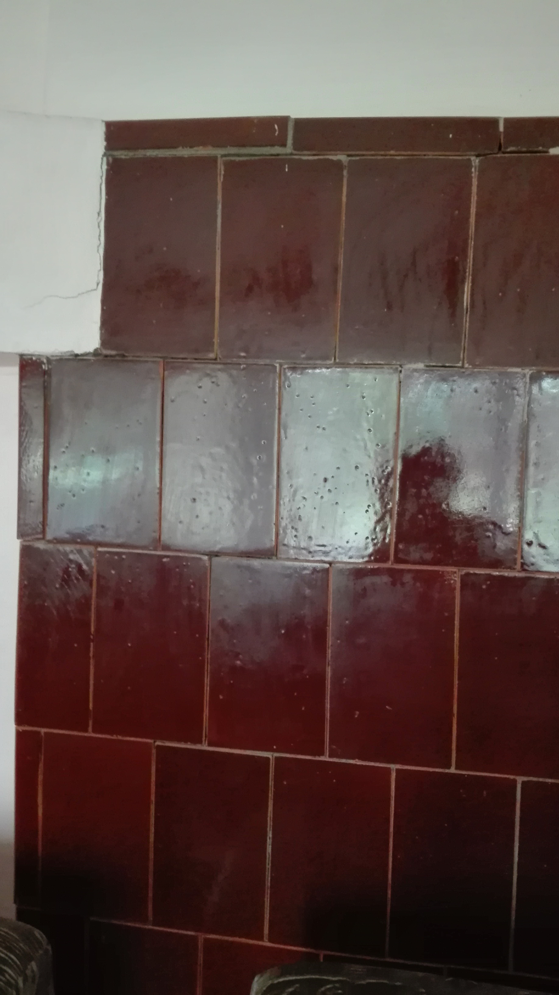 Mure järgmine: ca 1,3x2m glasuurpottidest soojamüüril on hakanud potid väljapoole liikuma, samuti on lõõri kukkunud kivi. Ilmselt vajalik müüri lahtivõtmine, kivide ja pottide uuesti kinnitamine ning paigaldus.