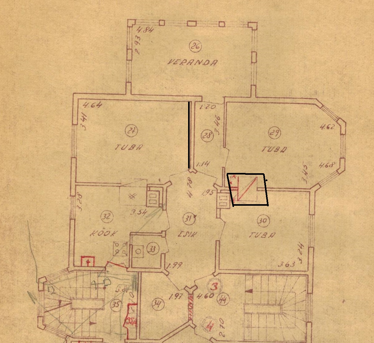 • Lammutustööd: tuba (joonisel 27) ja esik (joonisel 28) vahelise mittekandva vaheseina lammutamine