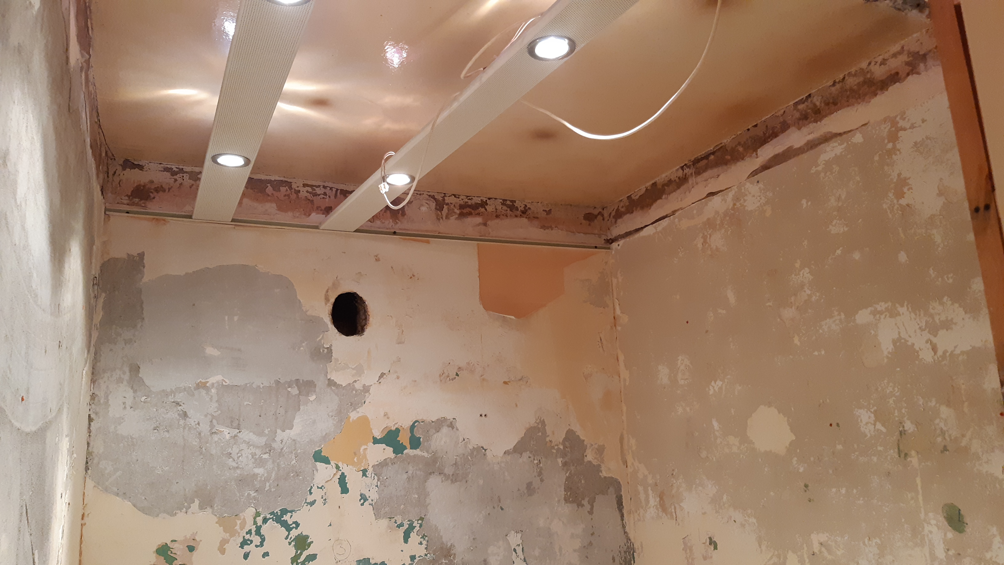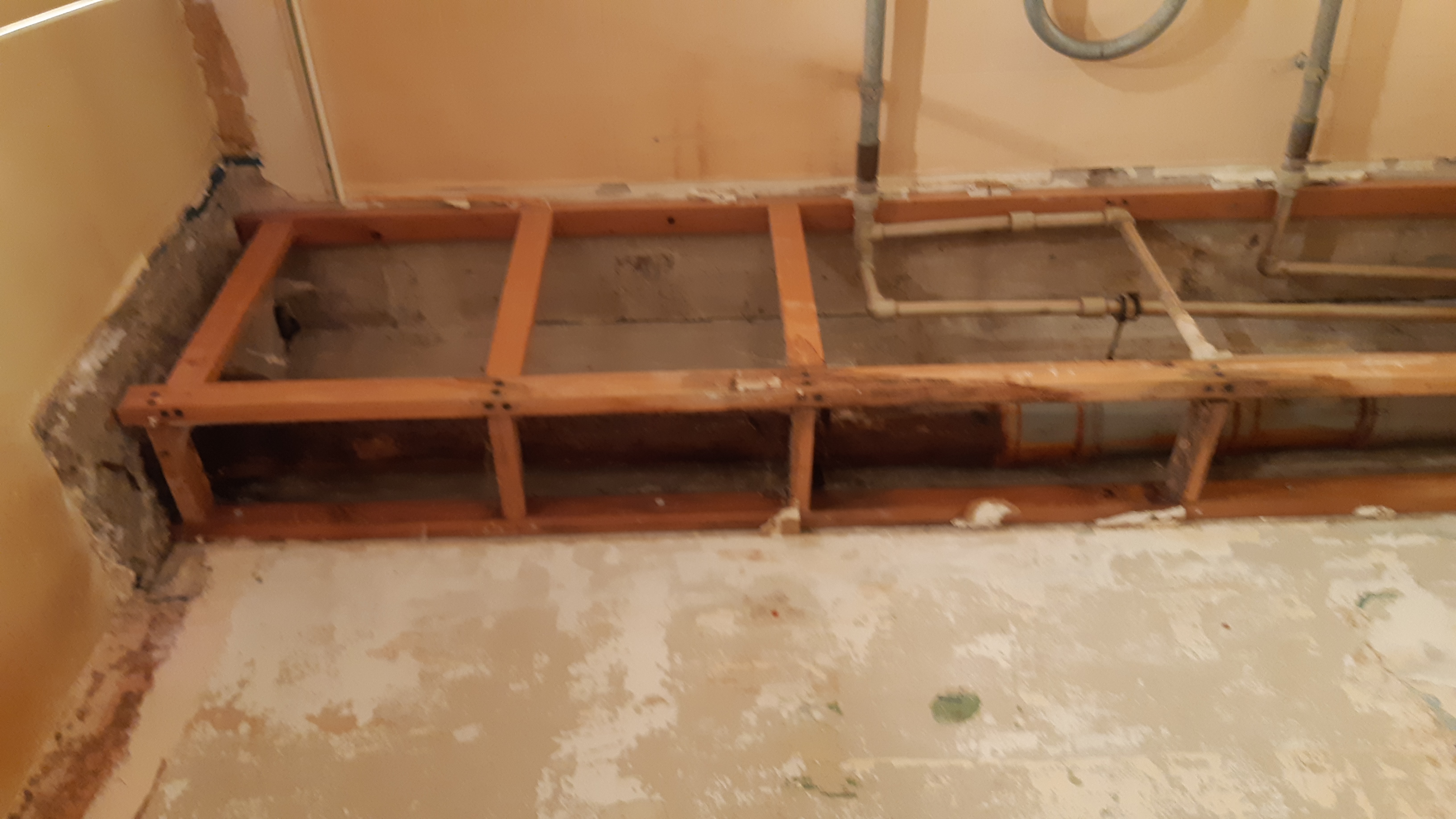 ühte seina karkass+kips (torudega sein, torud jäävad kipsi taha), lisaks püstaku ümber uus karkass ja võimalusel veemõõtjate tõstmine püstaku „kasti“;