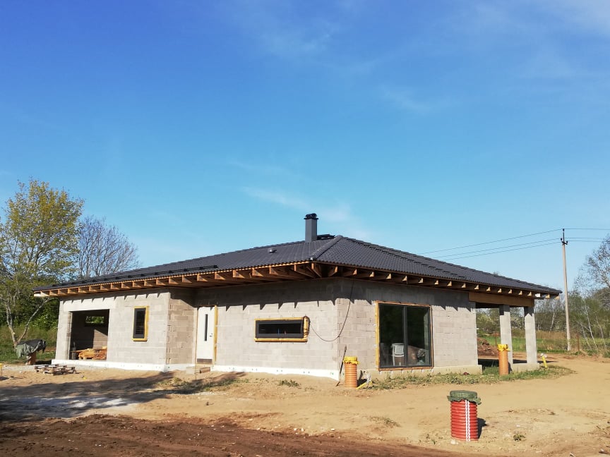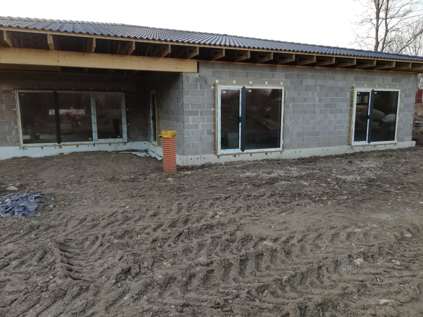 Ühekordse eramu fassaad vaja soojustada ja krohvida. Soojustuseks EPS Silver 100+100, see tähendab, et peno läheb seina kahes kihis ülekatetega. Armeerimine, kruntkrohv ja viimistluseks silikoonkrohv. Soklile alusprofiili paigaldus.