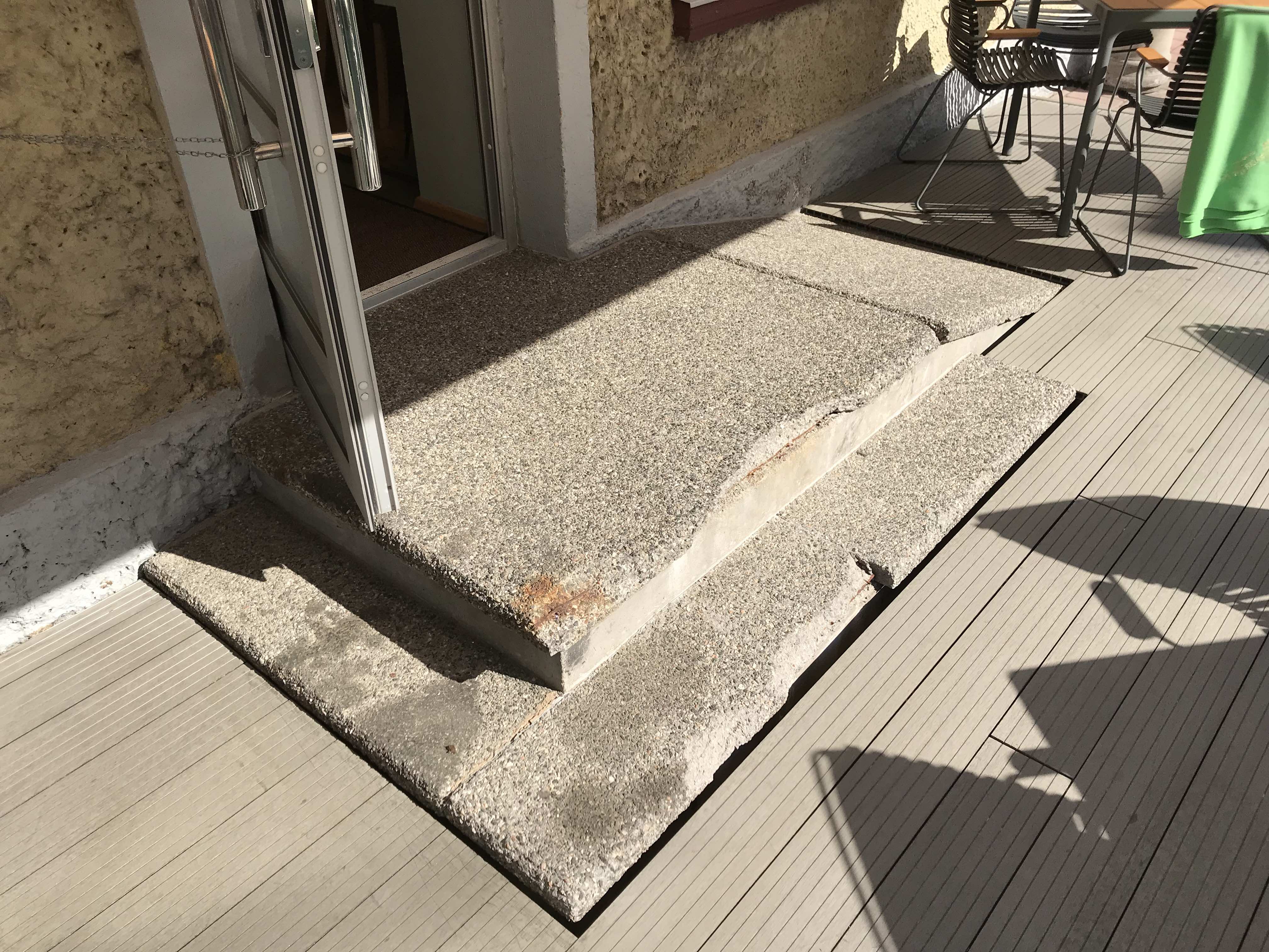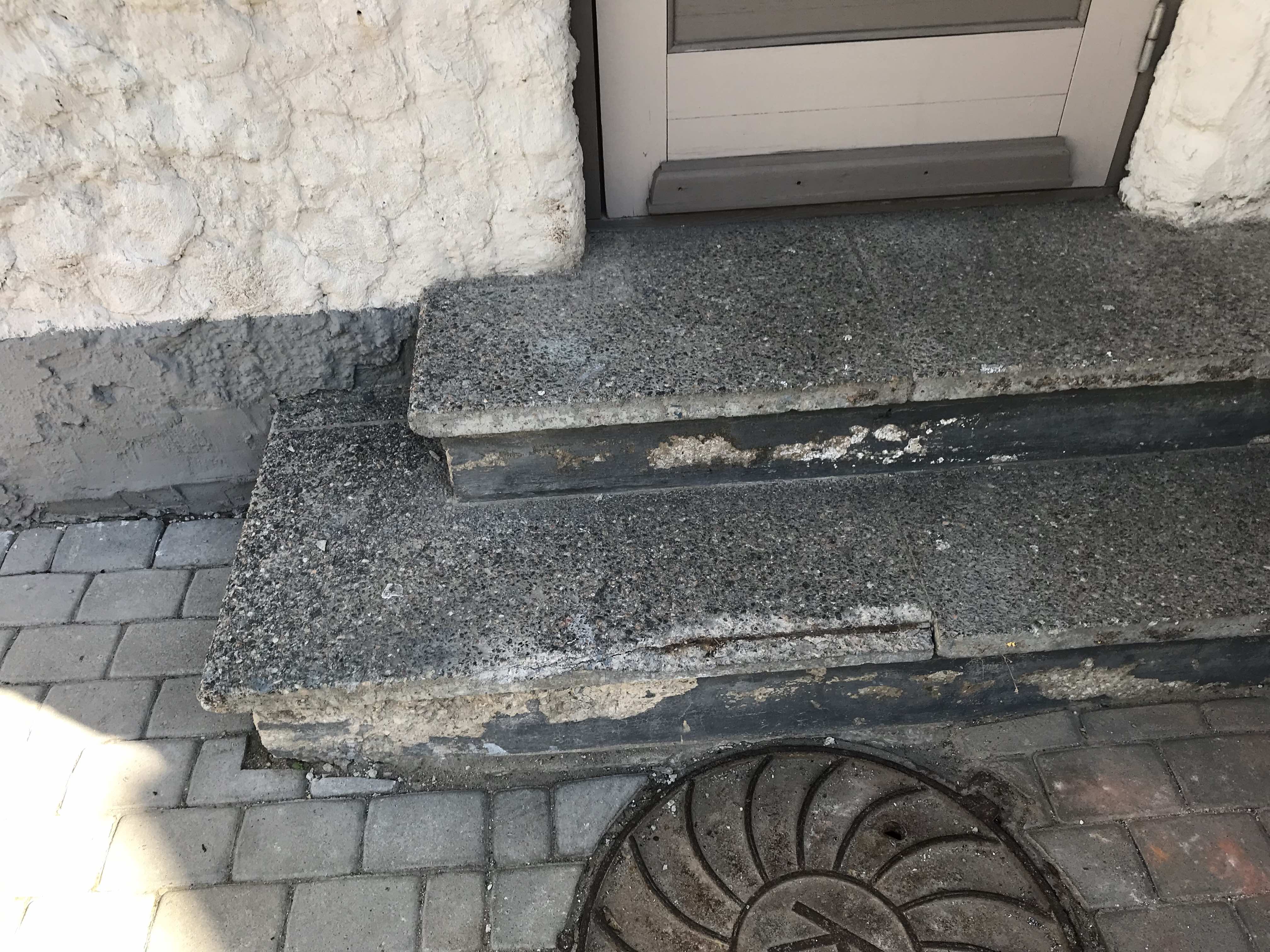 Pärnu kesklinnas pesubetoonist vanade trepiplaatide eemaldamine ja uute valmistamine ja paigaldamine