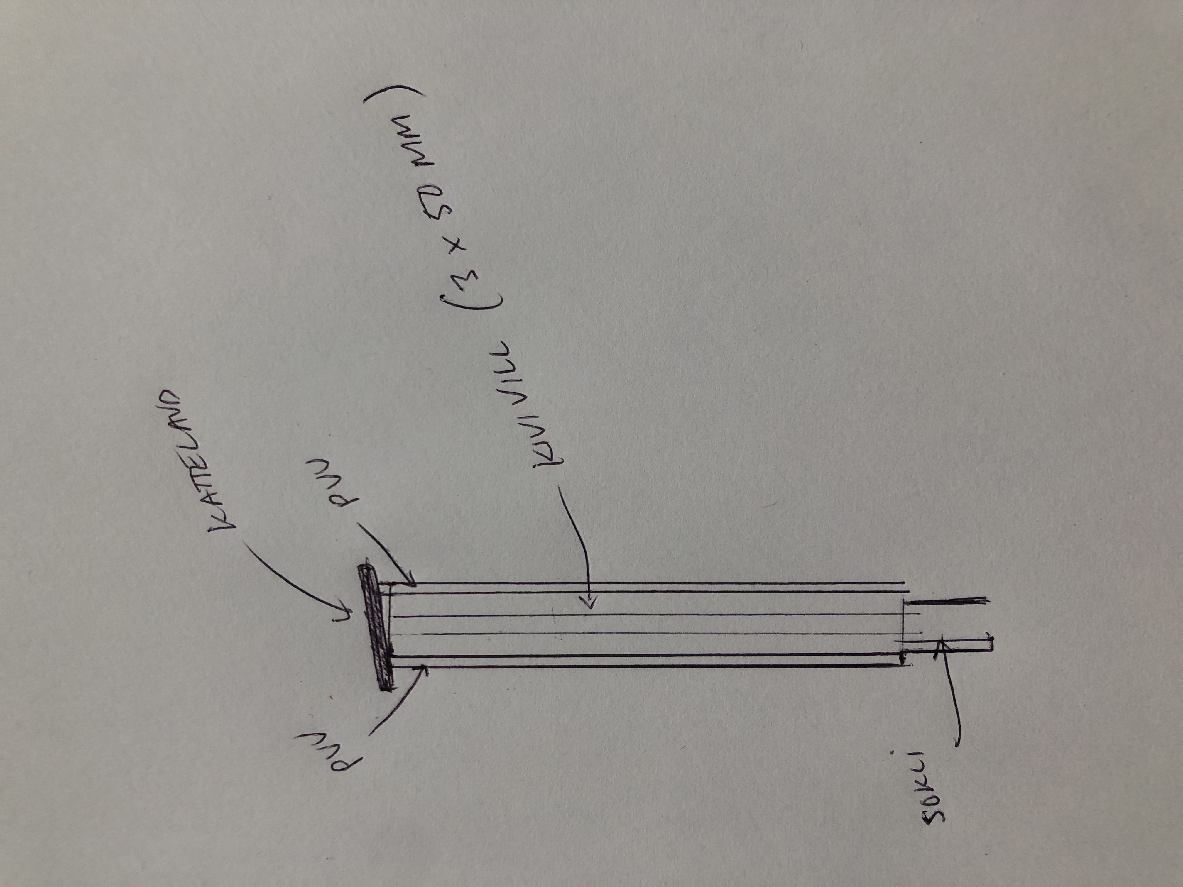 Müratokkesein: pikkus 13 m, struktuur pildis (joonis) -> puu + sobiv soojustusplaadid, näiteks EPS 60 Silver voi kivivill (3 paneelid, paksus 50 mm) + niiskuskindel sokli paneel + kattelaud.