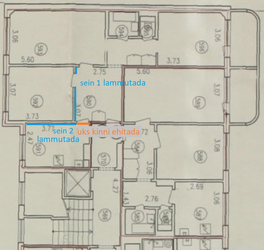 Projektis peab ära näitama ühe olemasoleva ukseava likvideerimise. Ukseava on tähistatud skeemil.