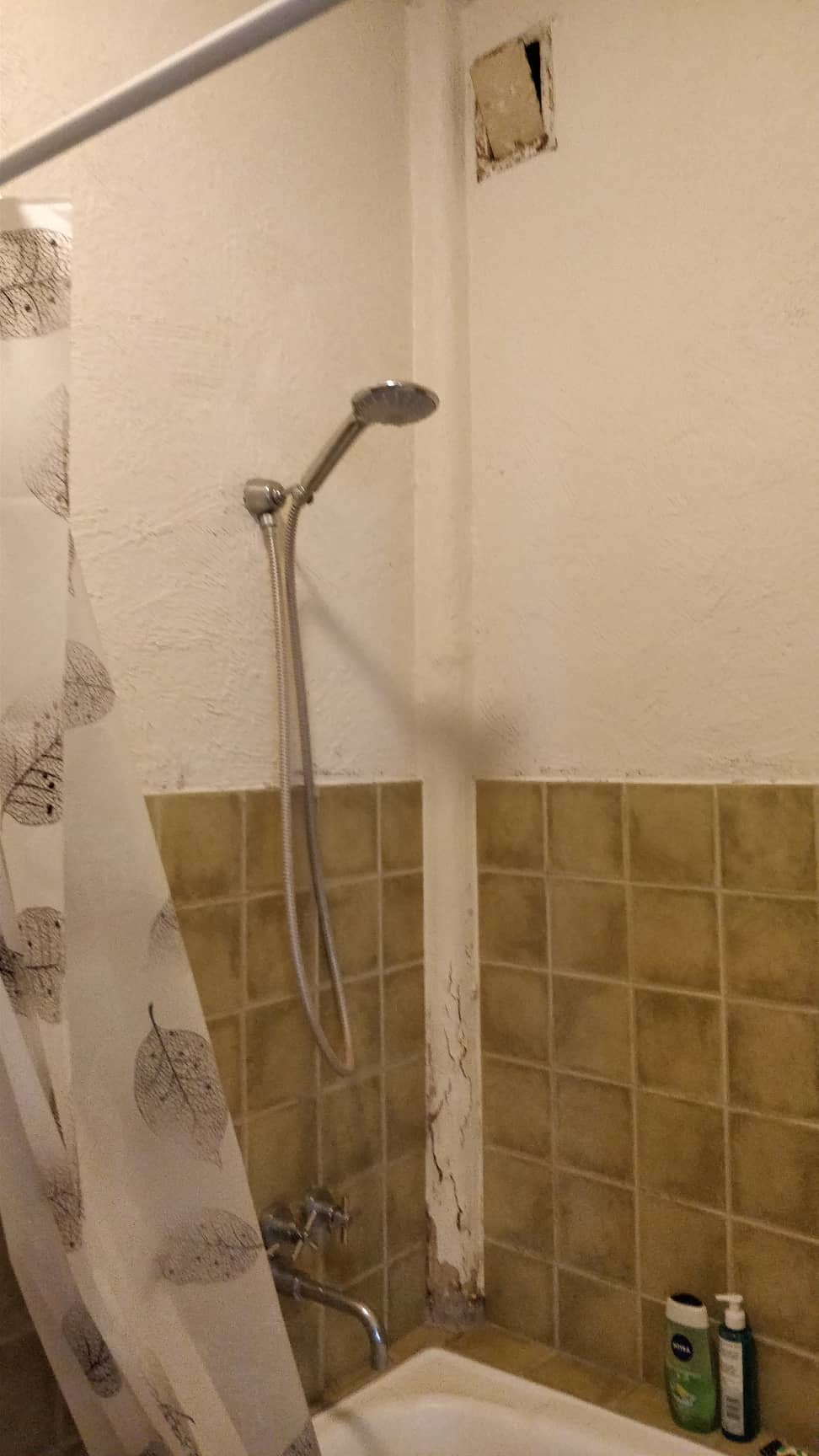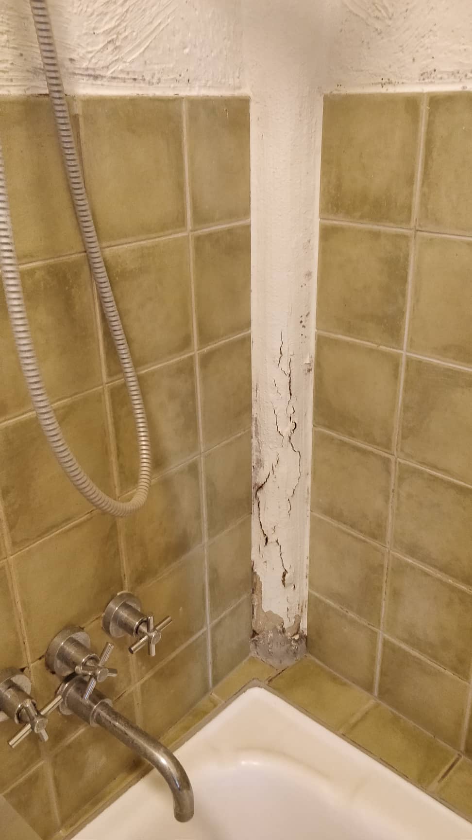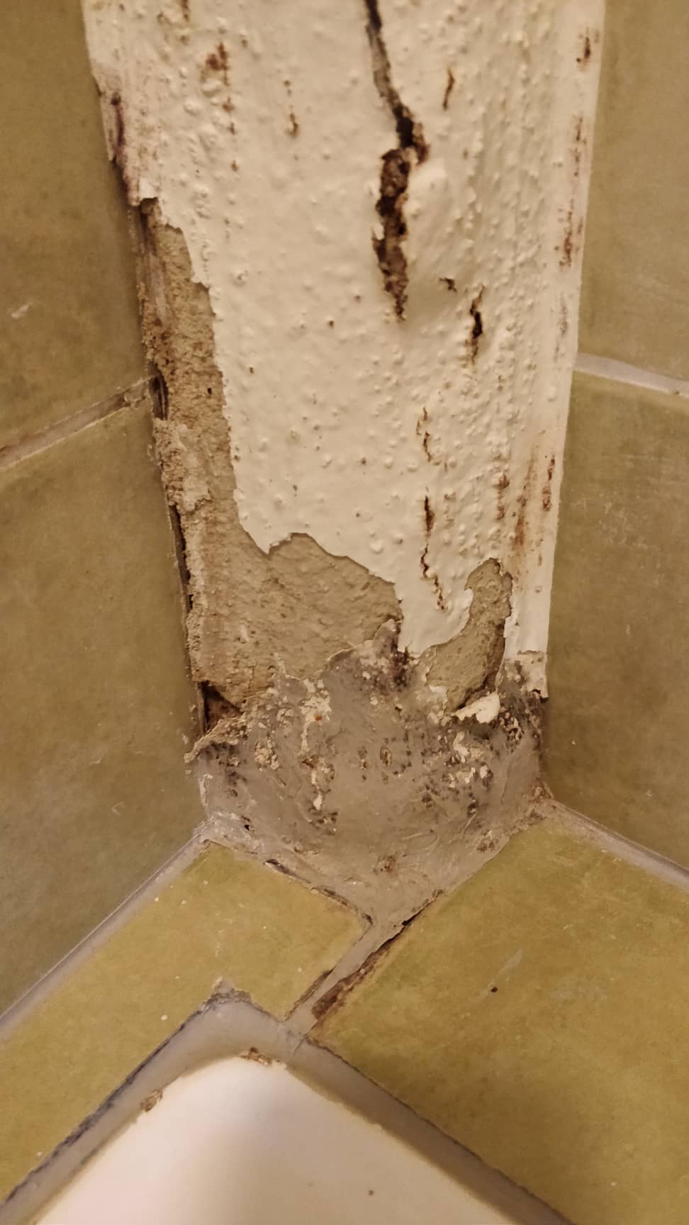 Vanninurgas on tekkinud aja ja pideva niiskuse toimel krohvitud pinnal veekahjustus. Tarvis oleks nurk veekindlalt parandada. Nurga taga võib olla toru, mille niiskus võib olla ka tekkinud probleemi osaline põhjus. Aga ilma nurgale haamriga kallale minemata on infot toru iseloomu kohta raske ammutada.