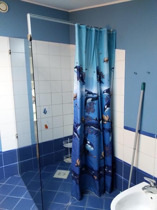 Vannituba 7.7 m2. Hankes on vanade plaatide ja santehnika demonteerimine ning seinte uuesti plaatimine (seinad tuleb osaliselt plaatida ja osaliselt värvida), uue santehnika ja vaheseina paigaldus. Vaheseina planeeritakse vanni ja WC-poti vahele.