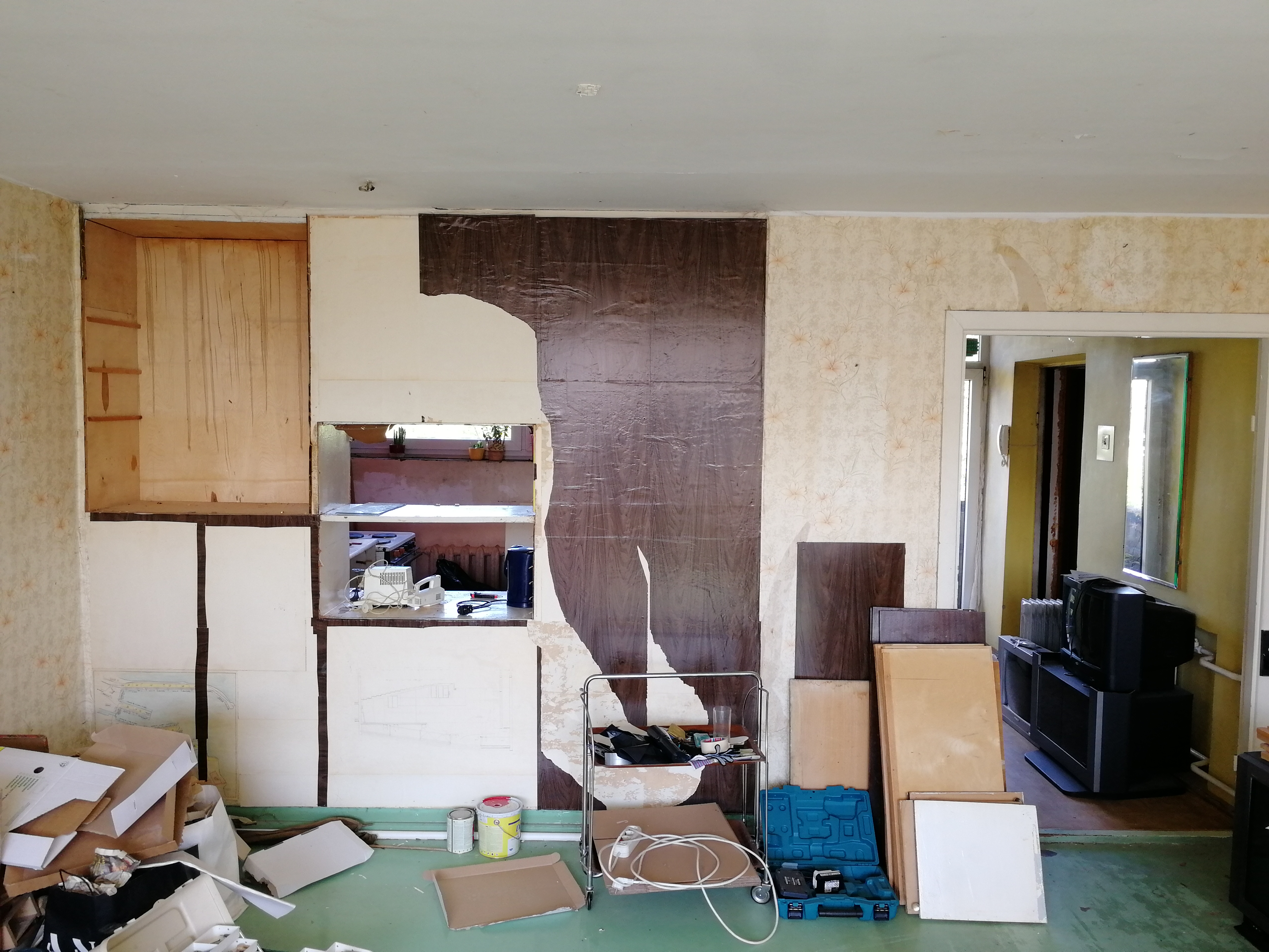 muu materjali lammutamine - sisseehitatud puidust kapid, valamu, köögi töötasapind, köögi seinakattematerjalid, vana värvi eemaldus 8m2 krohvseinalt