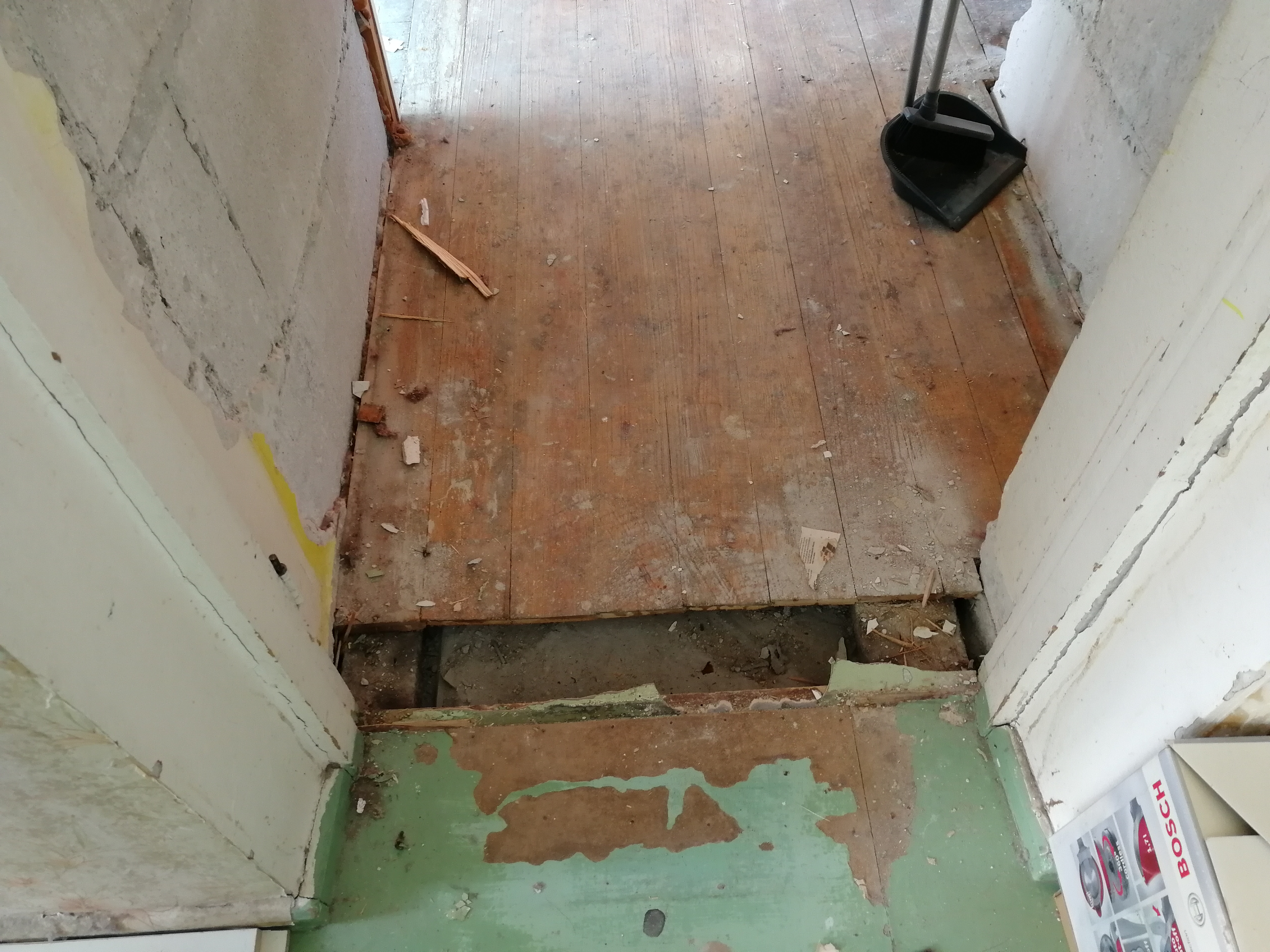 põranda ülesvõtmine ja põrandaaluse prahi koristus - põrandapinda u 85m2