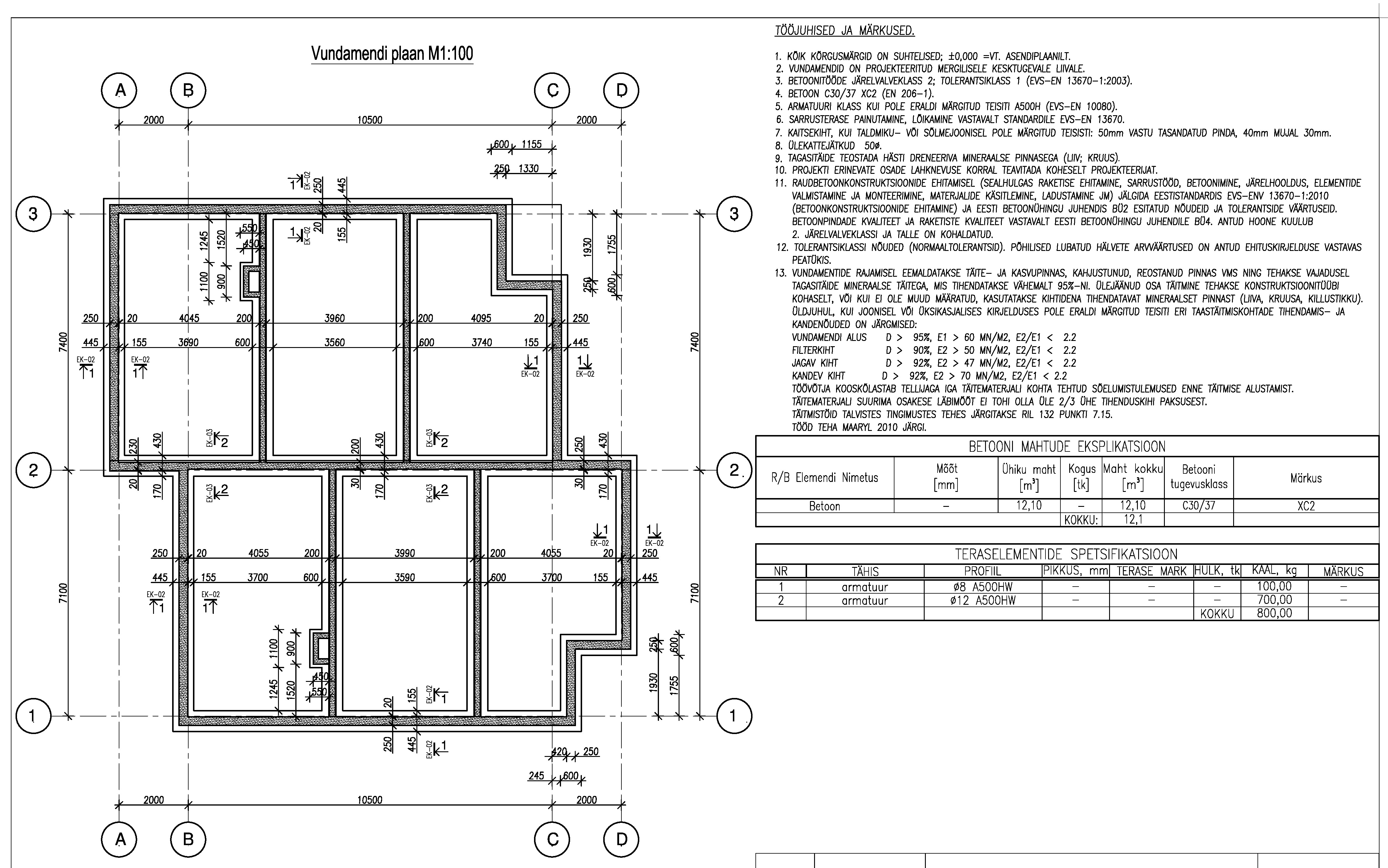 Uue lintvundamendi kogu suurus 205 m2. Vundamendi sokkel tuleb laduda fibost 200/250 MP5.