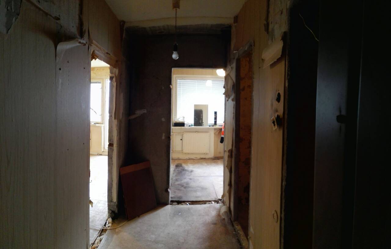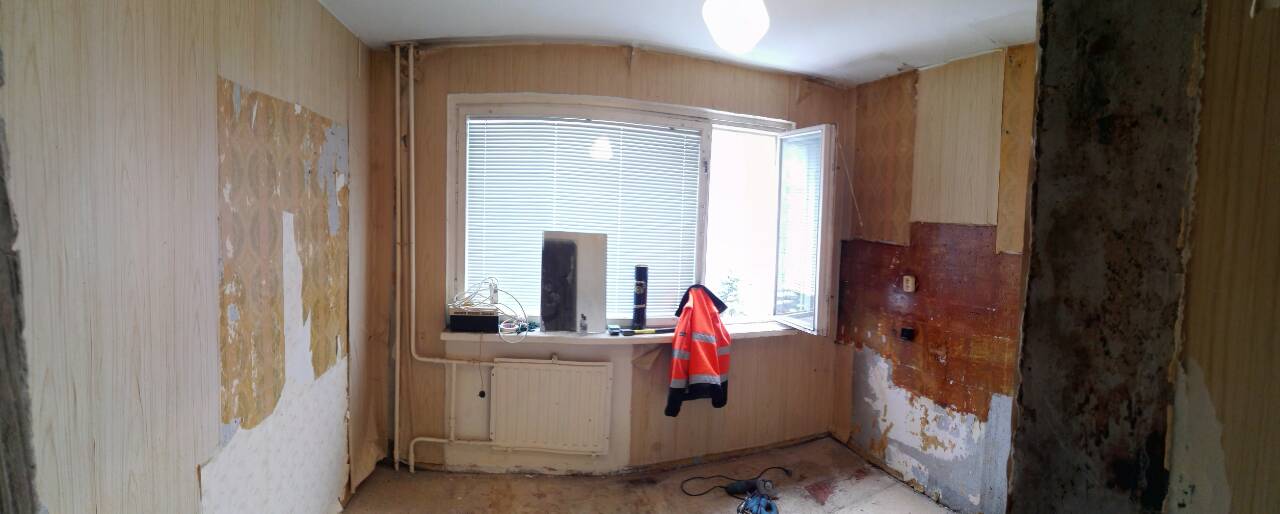 Lasnamäel 1-toalise 32m2 korteri remont. Korteri seisukord: mööbel, uksed, vannitoas plaadid eemaldatud.