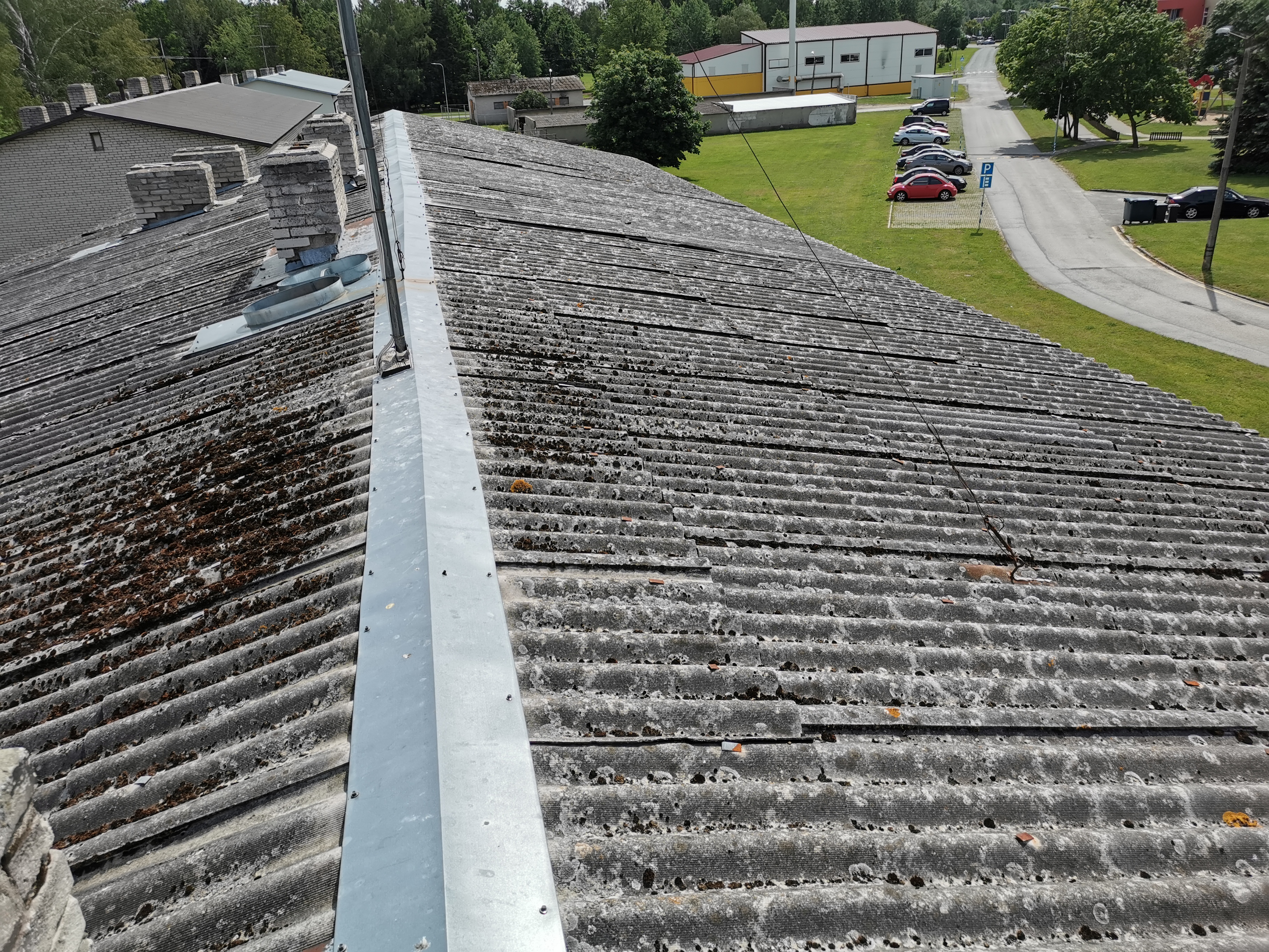 Katuse üldpind on 307,4m2. - Vana eterniit maha ja uus eterniit peale. Vana eterniit on vaja utiliseerida. Eterniit peab olema halli värvi. Harjaplekki saab kasutatada olemasolevat.