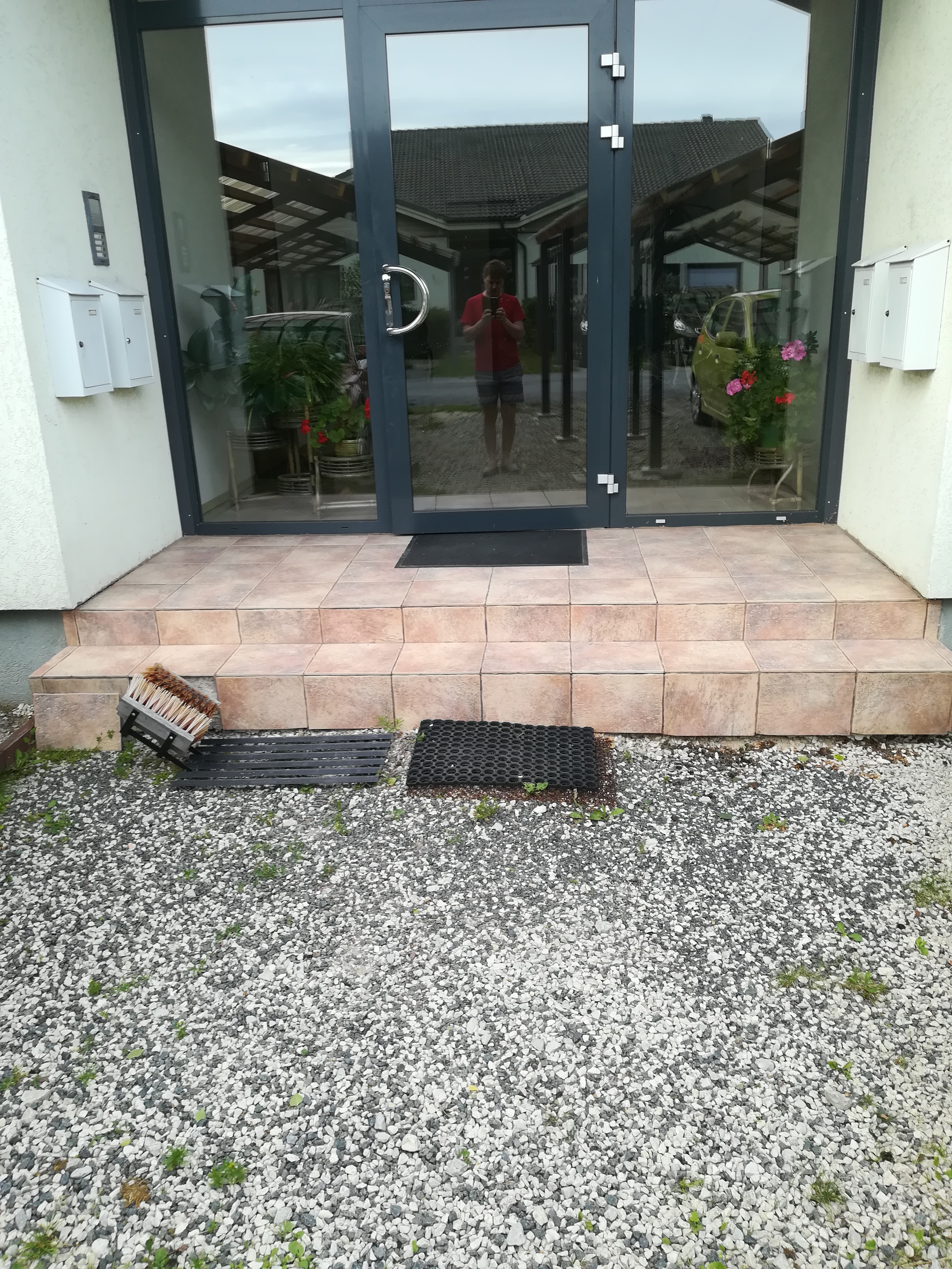 Olemasolevad plaadid vaja ära võtta ja asendada uutega. Uued peavad olema välitingimustesse sobivad ning võimalikult suure karedusastmega. Plaatimispind kokku umbes 8 m2.