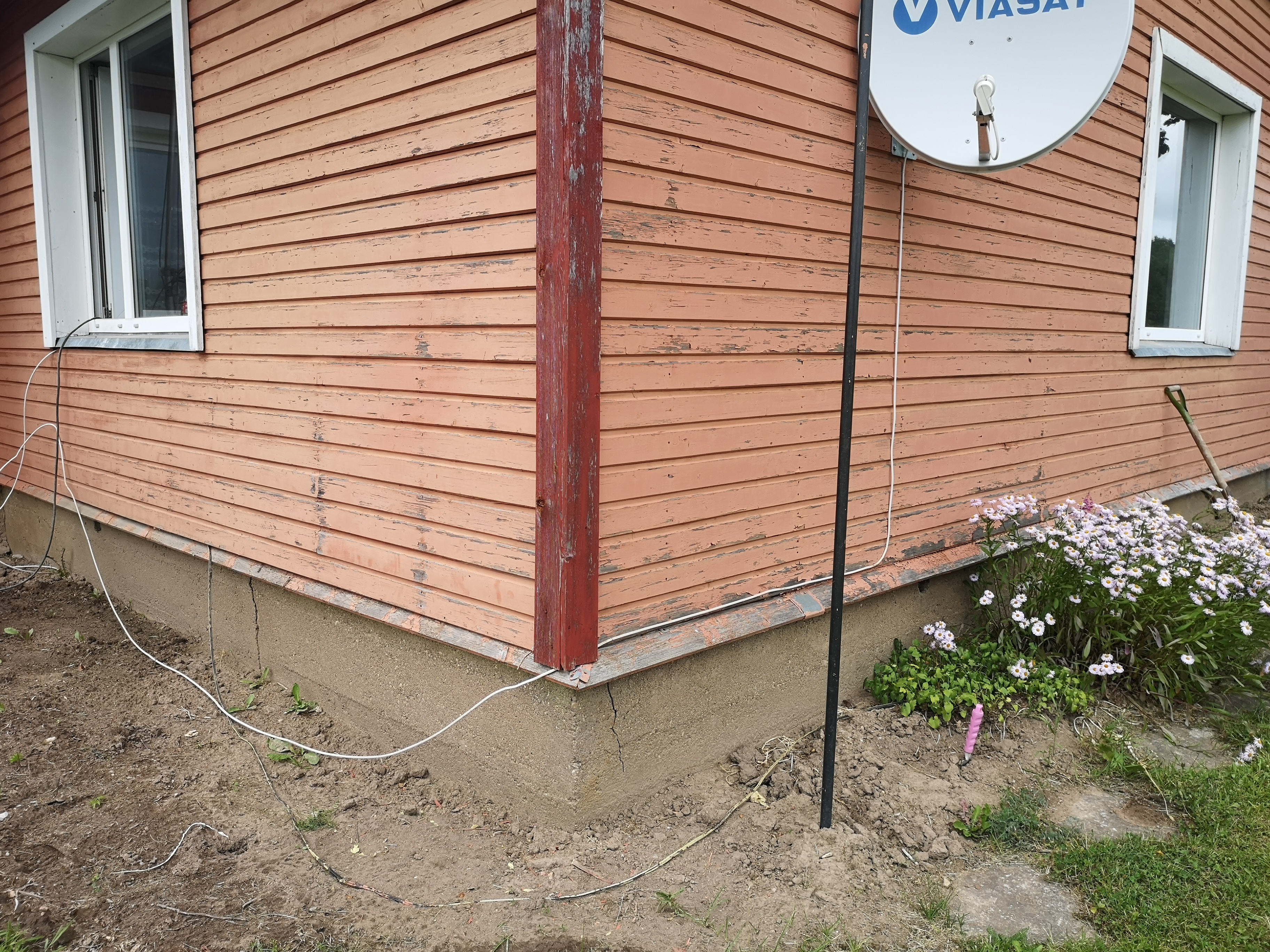 Maja Ida küljel vajaks vahetust palgi alumine serv 7 cm ulatuses. Põhjaküljel maja keskel vana vannitoa seinaks olnud palk vajaks vahetust palgi või fibo vastu umbes 4m2 seinapinda.