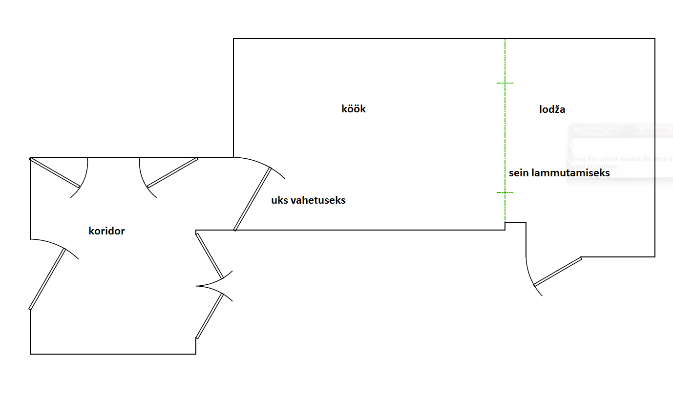 • Lammutada seinat köögi ja lodža vahel – pikkus 2.5m