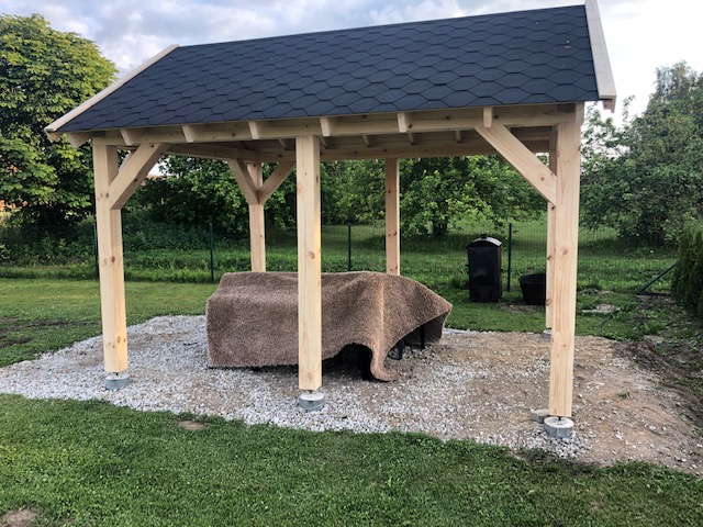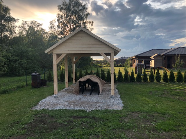 Paigaldada grillkoja põrandale Rae Kivitehase Nunna sillutuskivi ning ääristada Rae Kivitehase kõnnitee äärekiviga (hall). Killustikpõhi olemas, vajalik tuua kivialune liiv.