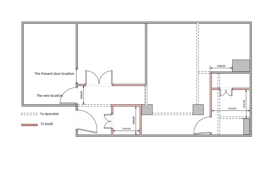 Remonditööde käigus soovime muuta korteri planeeringut, soovime eemaldada ja lisada vaheseinu. Kandvaid seinu ei muudeta.