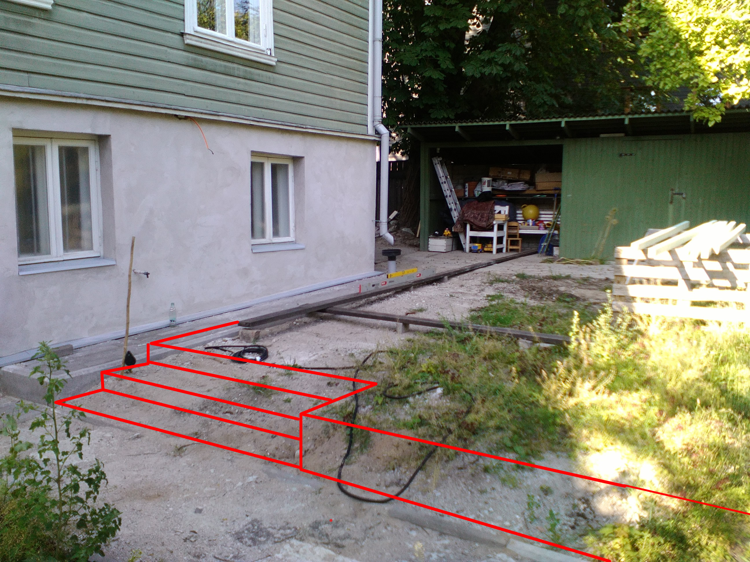 Terrassile vaja ehitada kaks treppi, laiusega ca 2m. Üks jääb nö terrassi sisse, teine välja äärde.