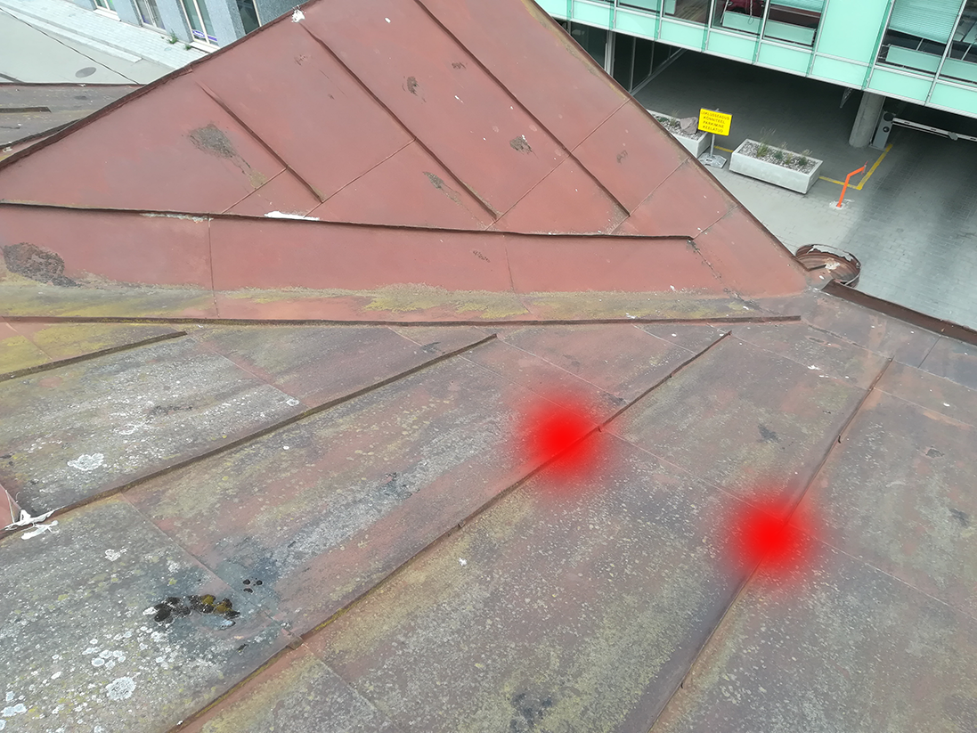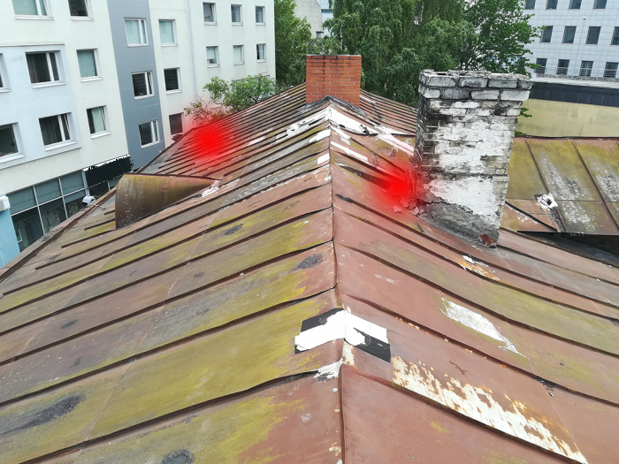 Vana katuse lappimine. Valtsplekk-katus. Kahekordne puitehitis Tallinna kesklinnas. Katuse üldpind ca 283 m2. Fikseeritud lekkekohti 4-5.