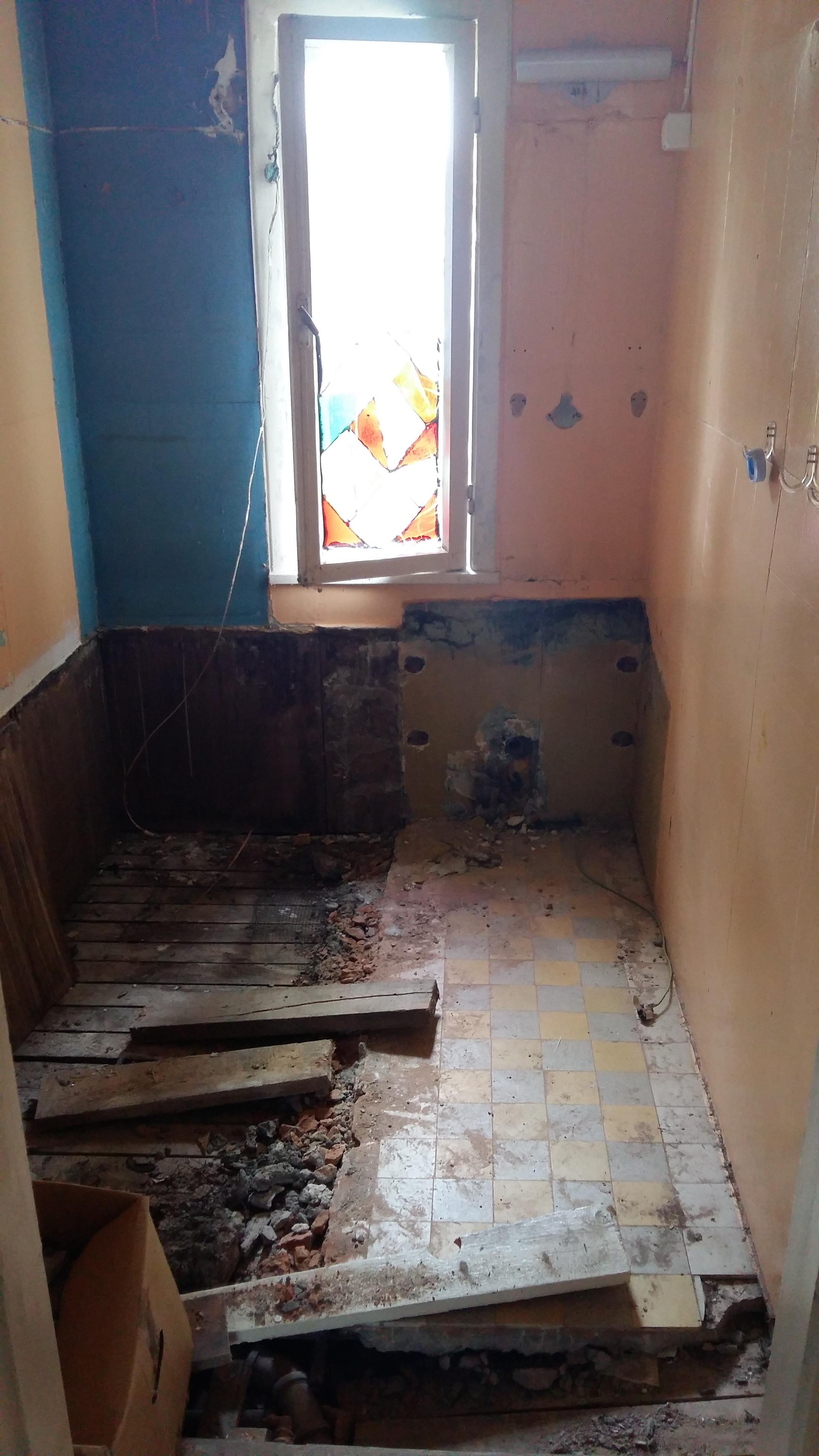 Vannitoa kapitaalremont, esikupõranda lihvimine (uus laudpõrand) ja värvimine, WC-s seinte plaatimine.