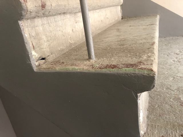 Kolmekordse hoone trepikoja remont. Esmalt selgitada milised juhtmed on vajalikud seejärel kasutud juhtmed eemaldada ning ülejäänud peita seina sisse. Seinad pahteldada ja värvida. Trepiastme serva mõlemale poole värvida u 4 -5 cm riba, samuti värvida astme äärsele seinale trepi kõrvale rant. Seina keskele kaks trepi randiga ühte värvi triipu. Triipudest ülespoalole sein ja lagi vajalikst kohtadest pahteldada ning värvida valgeks. II korruse akna kohal valgusti toite juhe tõsta ümber lakke. Paigaldada uued liikumisanduriga laevalgustid ( 3 tk). Käsipuu pulgad värvida mustaks. Paekivi trepp puhastada ja katta kivi kaitsega.