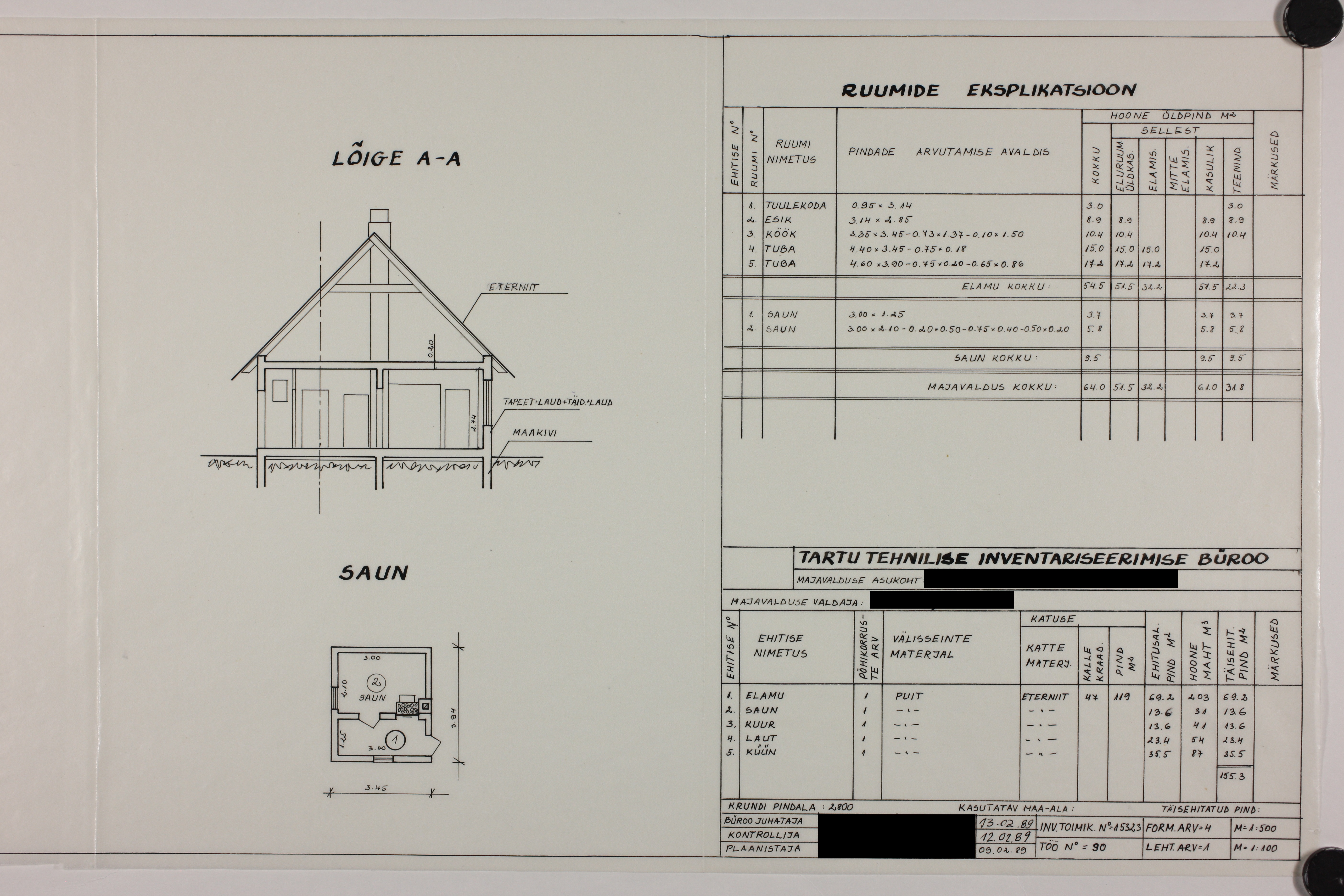 | Ehitusmaterjalid: | Töö tegija poolt |