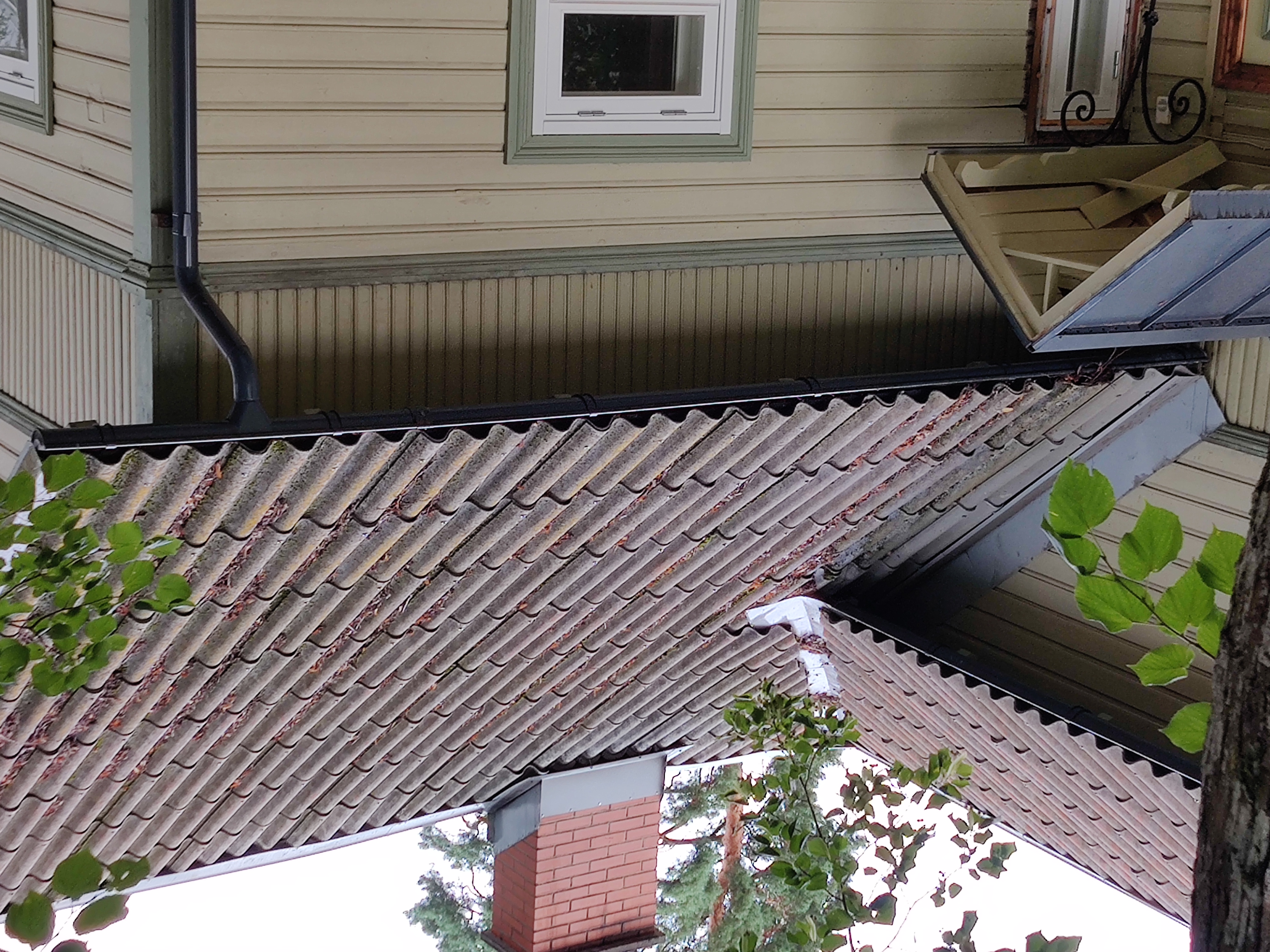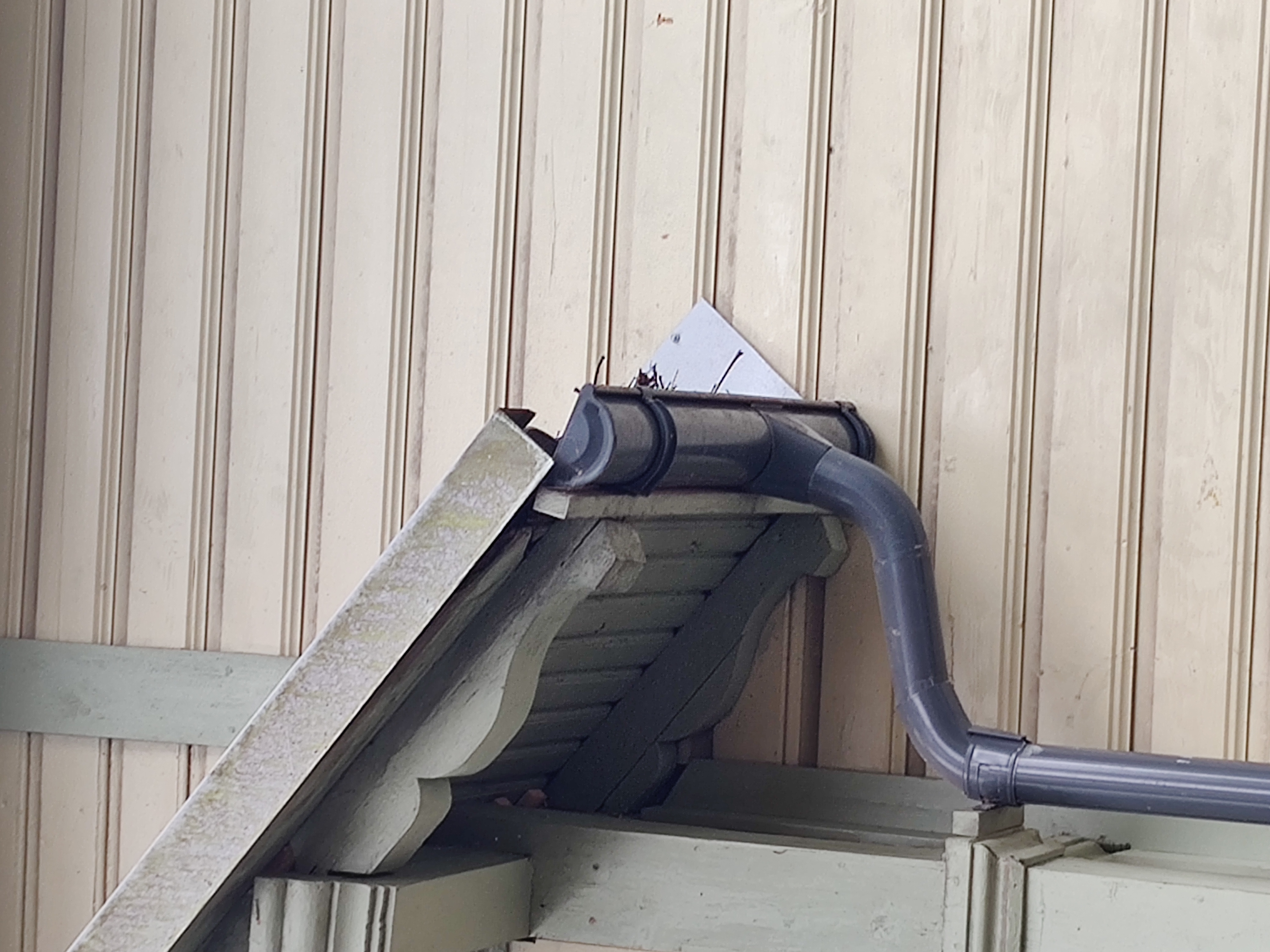 Esineb palju ülejookse ka mitte tugeva vihma korral. Rennide kinnituslaud on nurga all, seega on ka rennid peaaegu katuse kaldega.