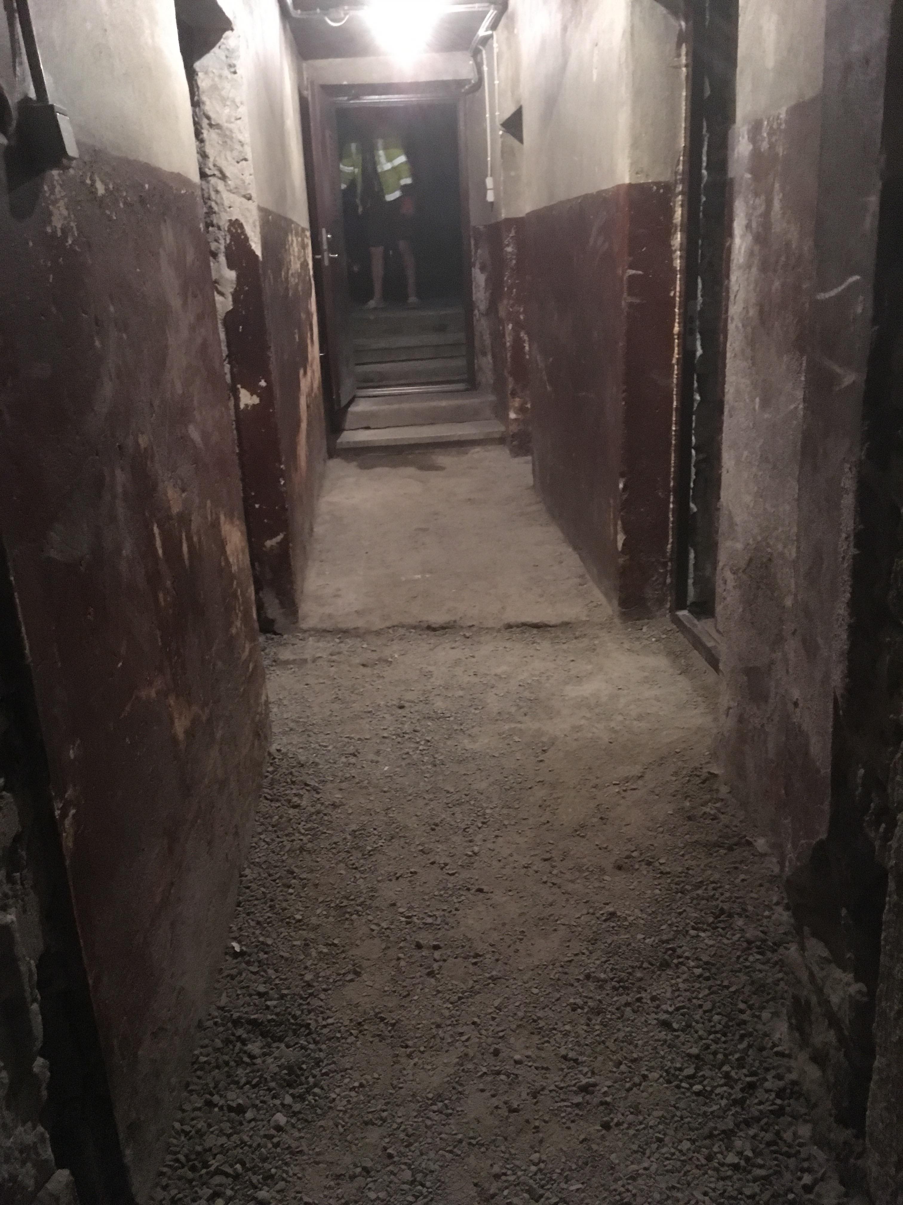 Enne kui asuda killustiku kihi tasandamisele tuleb teostada pealmise kihi u 70mm ulatuses, läbipesu, et eemaldada orgaaniline materjal, mis hilisemas ekspluatatsioonis võiks põranda alla hakata niiskuse mõjul lagunema. Koridoris on osaliselt teostatud ka betooni valu. Antud osa on plaanis eemaldada.