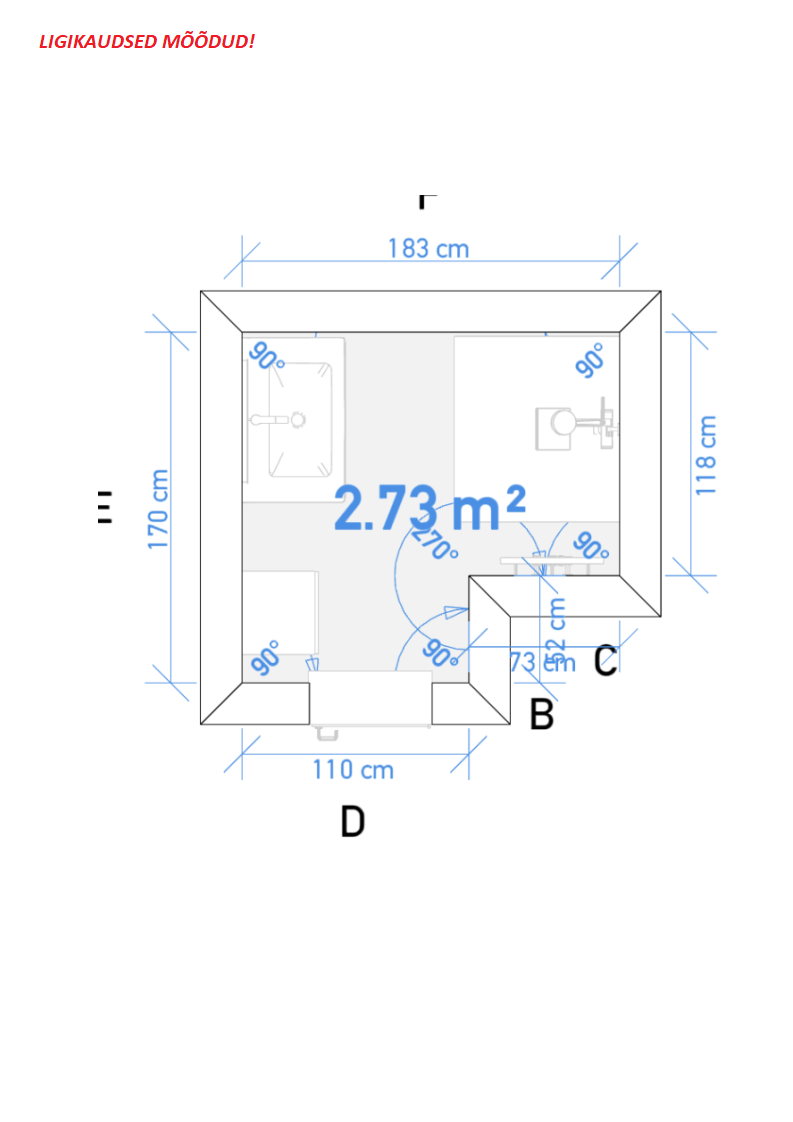 Ligikaudse vannitoa mõõdud -vaata pilti „mõõdud“.
