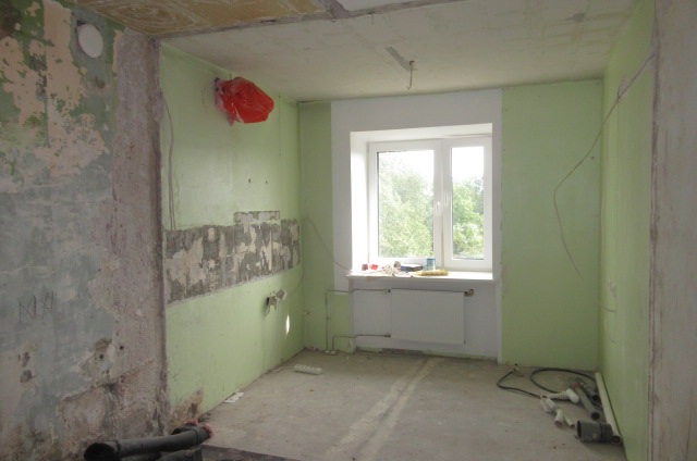 Korterist on eemaldatud mõned mittekandvad vaheseinad, mis asendatakse hiljem kergvaheseintega.