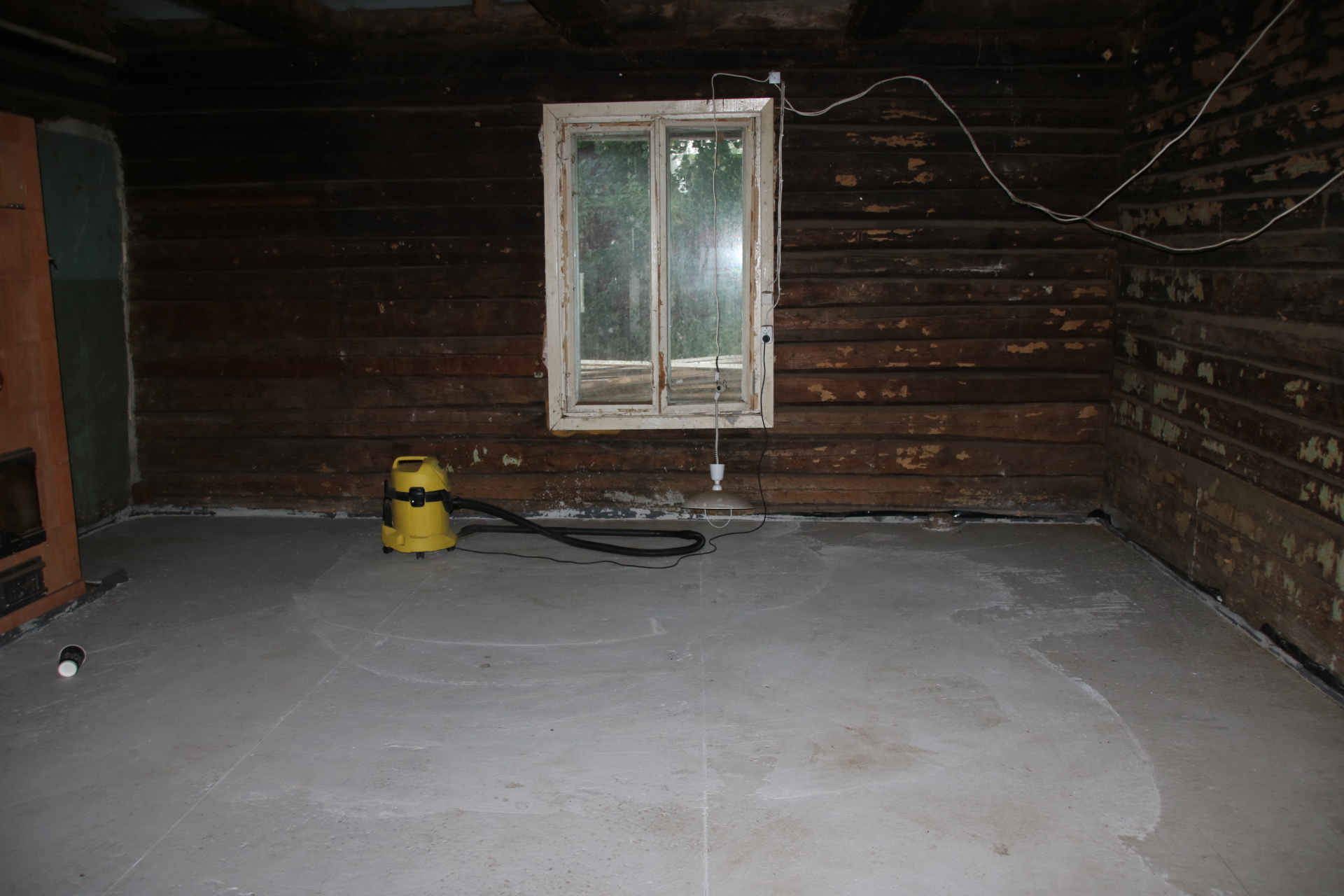 põrandakatte (osaliselt laminaat, osaliselt kiviplaadid) paigaldamine betoonpõranda peale,