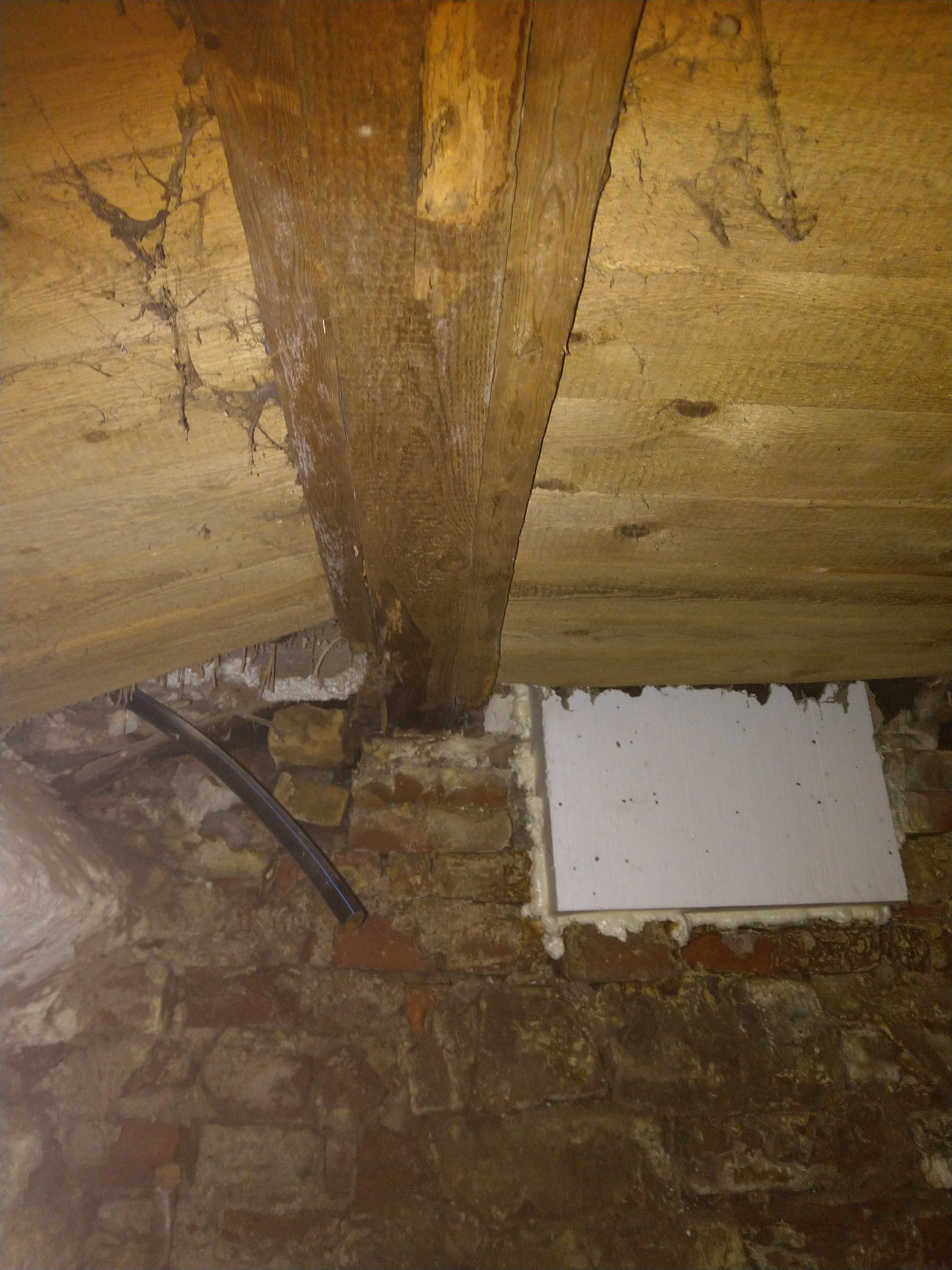 2. Keldris võtta lahti osa laest, et proteesida ja toestada läbi mädanenud tala - 3 meetrit; lahti võetud tala ümbrus soojustada peno või villaga, lauad tagasi panna.