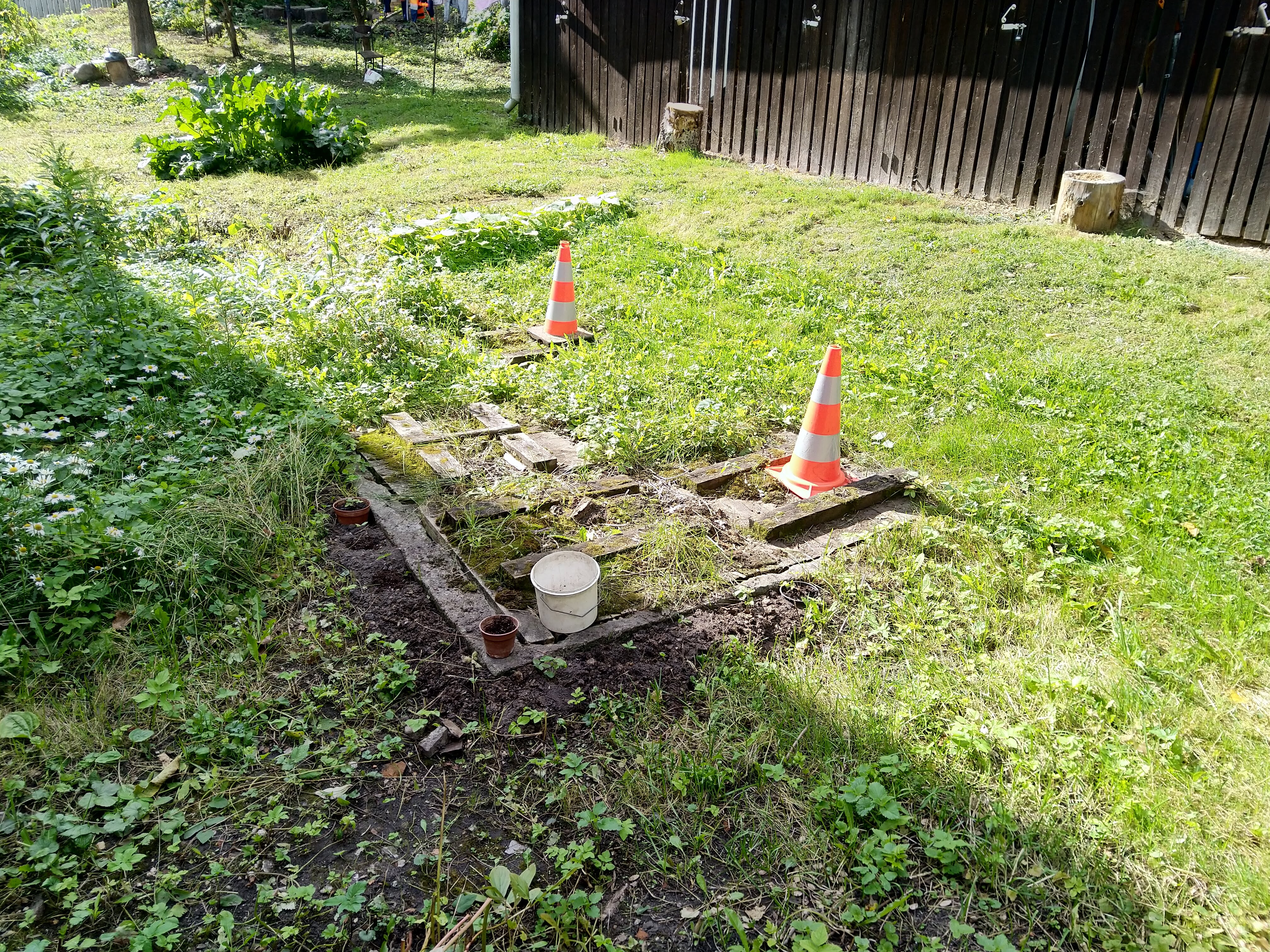 3. Hoovis olevate kanalisatsioonikaevude ümber teha lihtne piirdeaed 2x2 meetrit, puidust aiapostid ja 3-4 horisontaalset lippi.