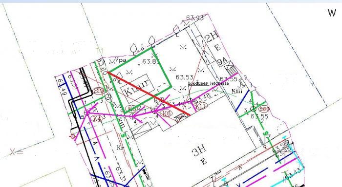 1) 100m2 Pinnase eemaldamine ekskavaatoriga. Eemaldatava kihu paksus 60cm. (Piirid on märgitud pildil rohelisega.)