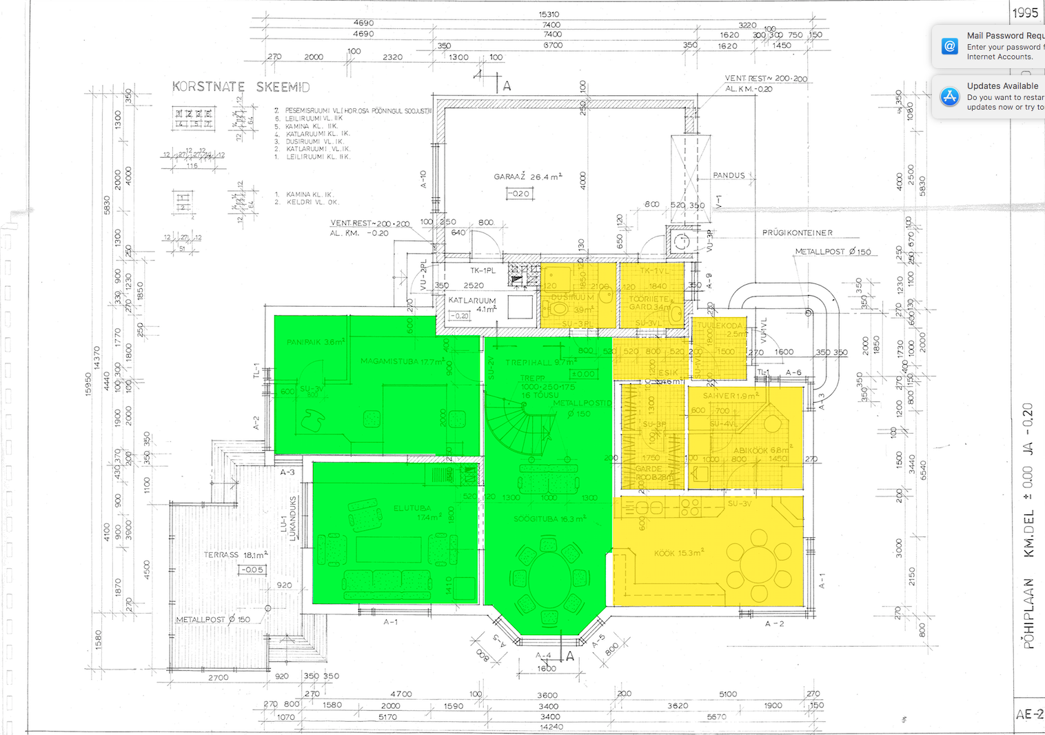 - Vana keraamilise plaadi demonteerimine ja utiliseerimine (plaani peal kollane ala) ca 40m2.