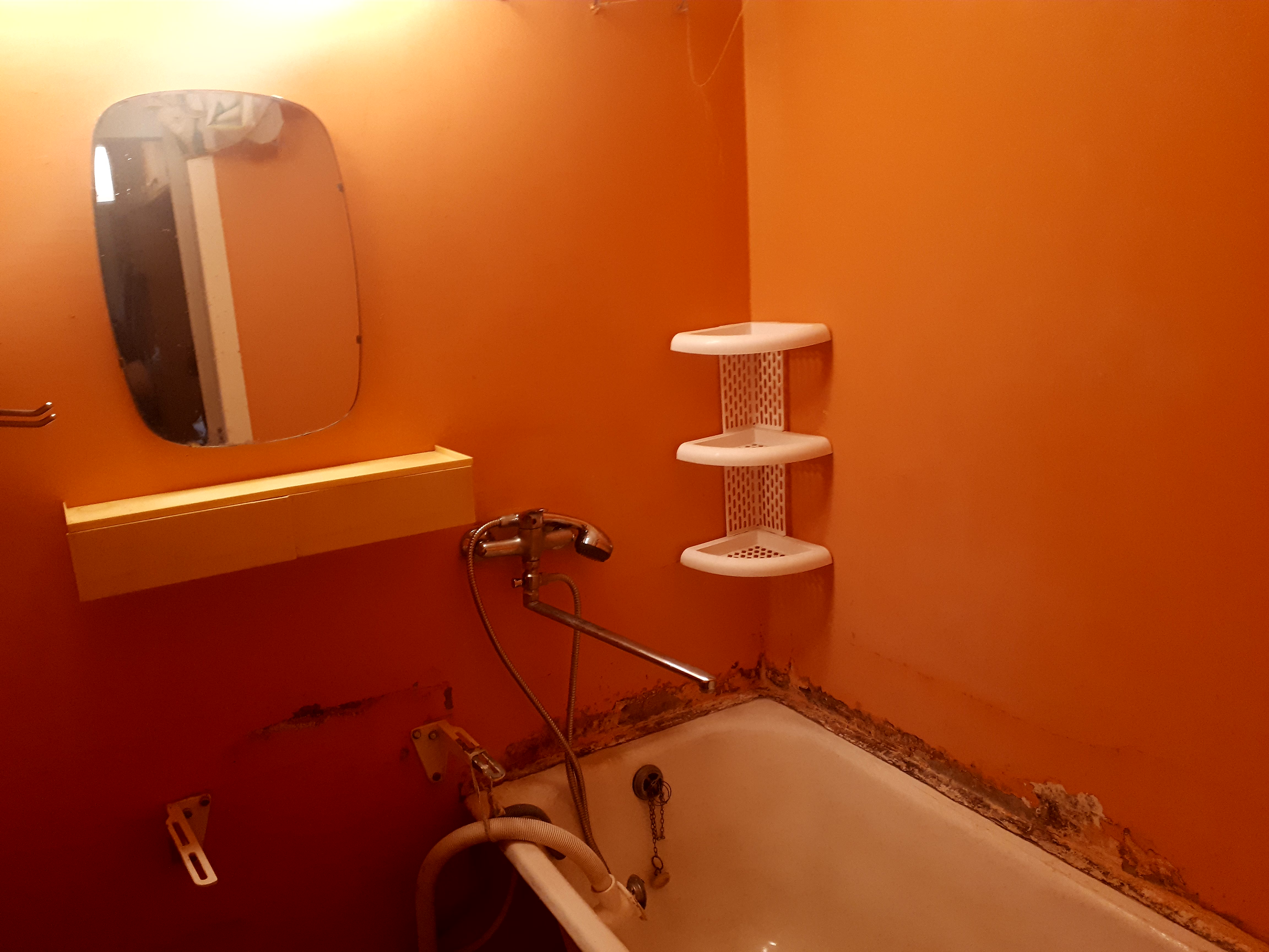 Vannituba on originaalilähedane ja amortiseerunud. Lammutada tuleb olemasolev viimistluskiht, vann ja torustik püstakuni.