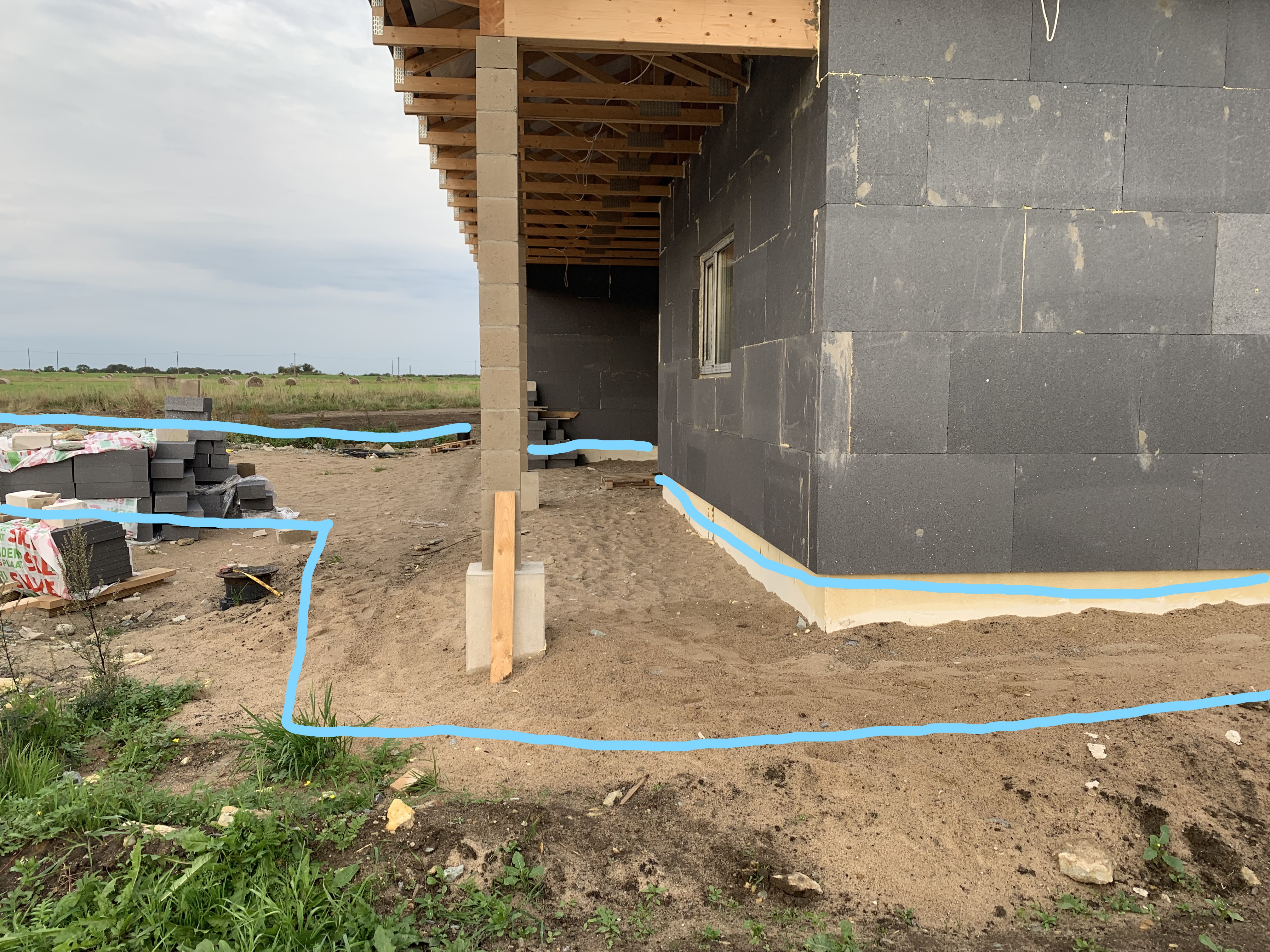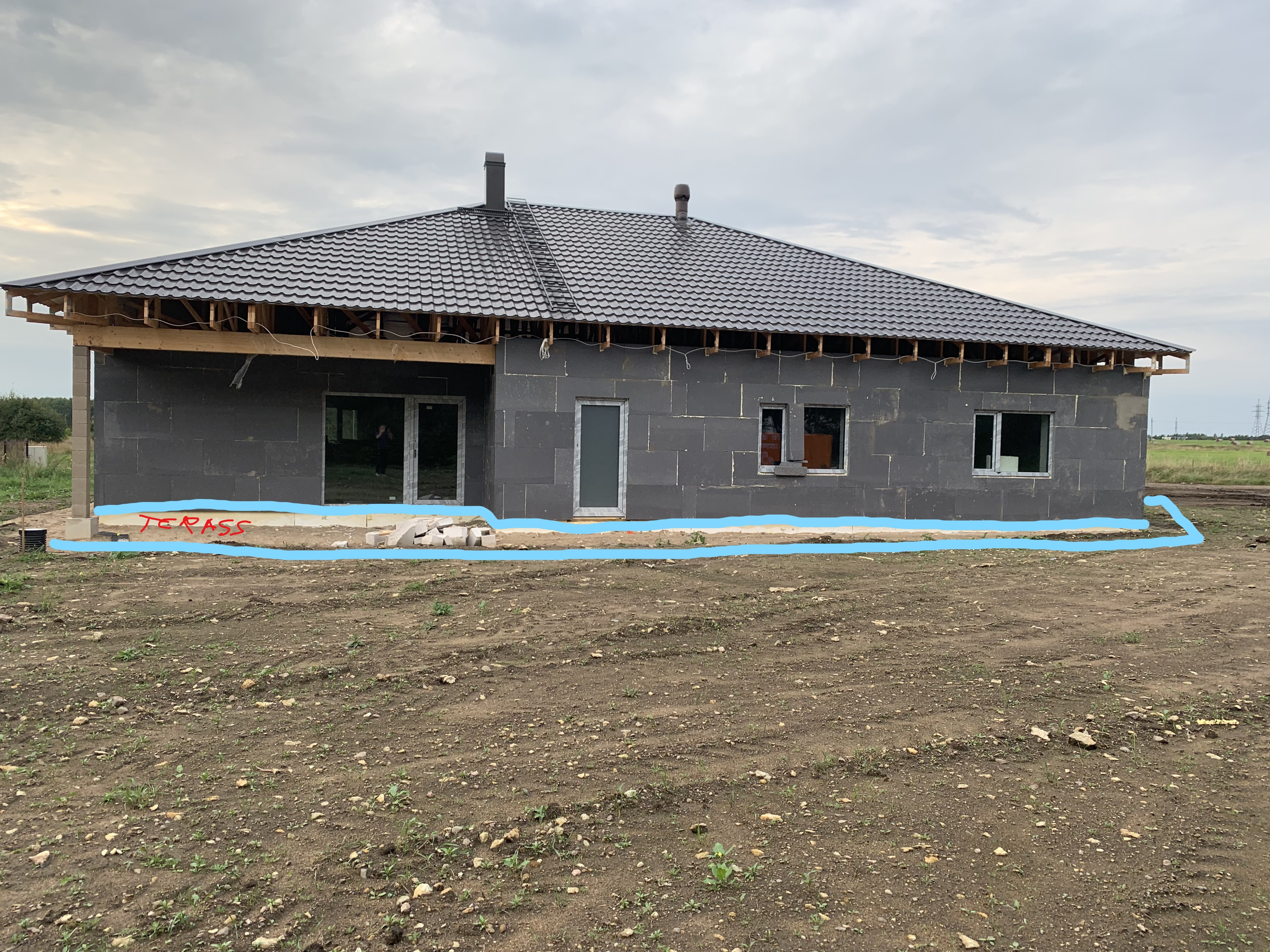 Maja tagumise osas kus on"terass", tuleks ehitada sama kõrgele kust algab sokkel ehk seal peab ehitama kõrgema "padja" ja arvatavasti kõrgem äärekivi kui mujal.