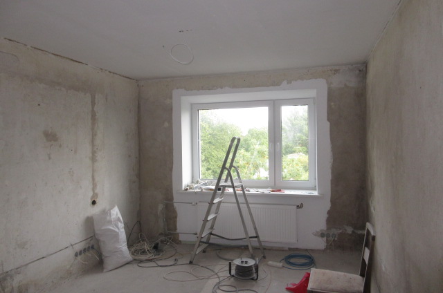 Korterist on eemaldatud mõned mittekandvad vaheseinad, mis asendatakse hiljem kergvaheseintega.