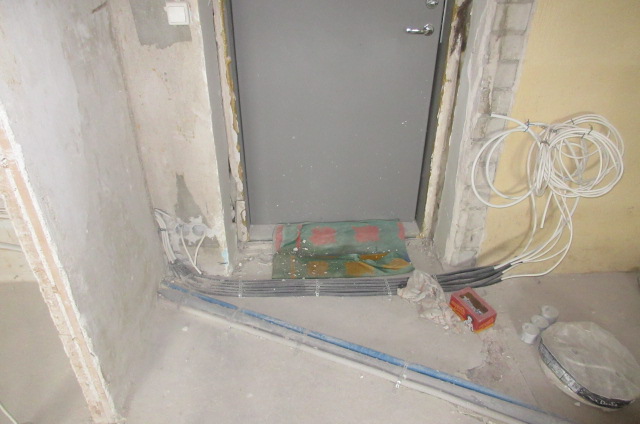 Tasandustööde mahus vajalik betoneerida/tasandada põrand kanalisatsiooni- ja veetorude kõrgusele esikus.