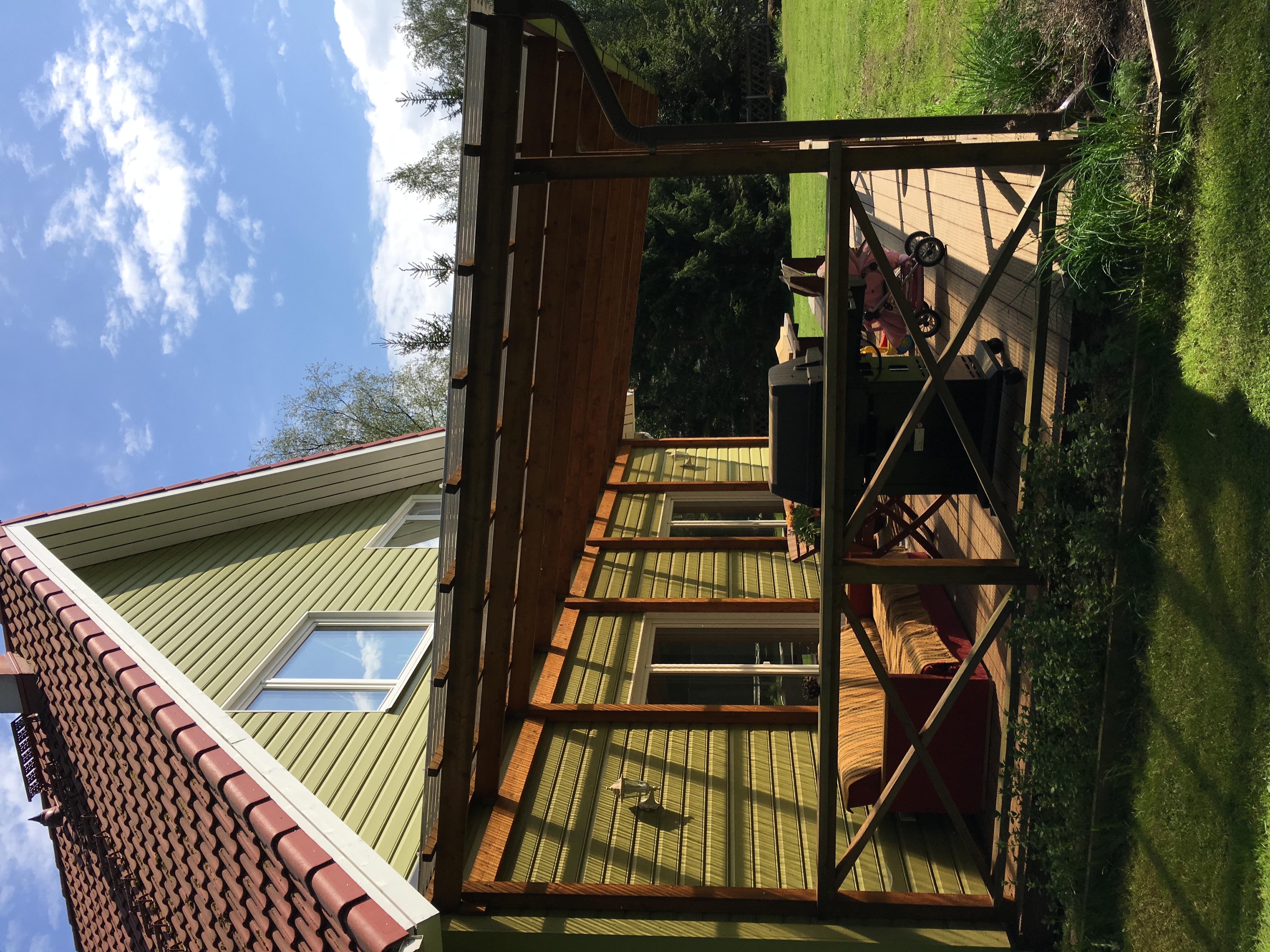 9. Terrassile on peale ehitatud kergkatus, küljed avatud.