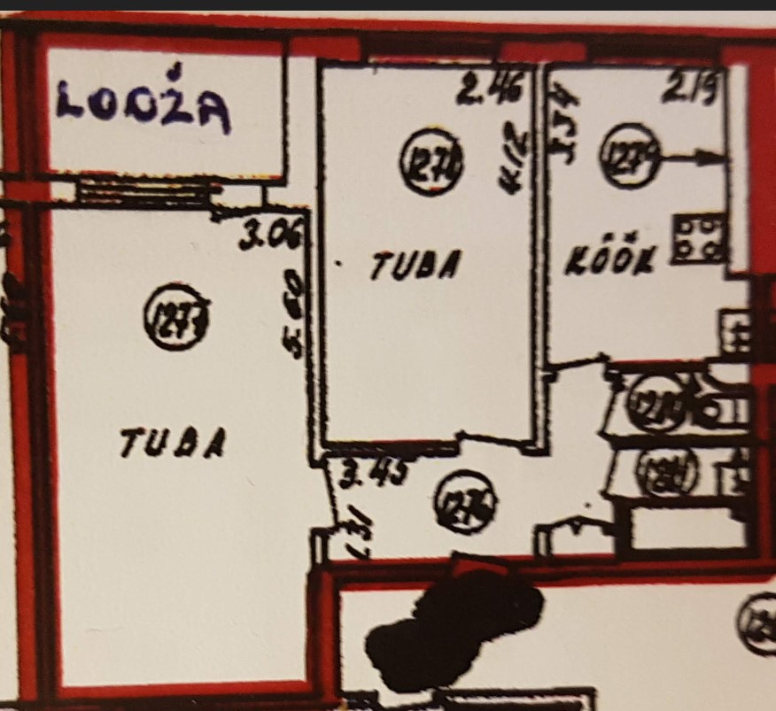 Korteris on tehtud kunagi remonti, kuid olemasolevad põrandakatted koos alusega tuleb eemaldada, kõik seinad on kaetud tapeediga. Vannituba ja wc on lahus, tuleks sein vahelt lammutada.