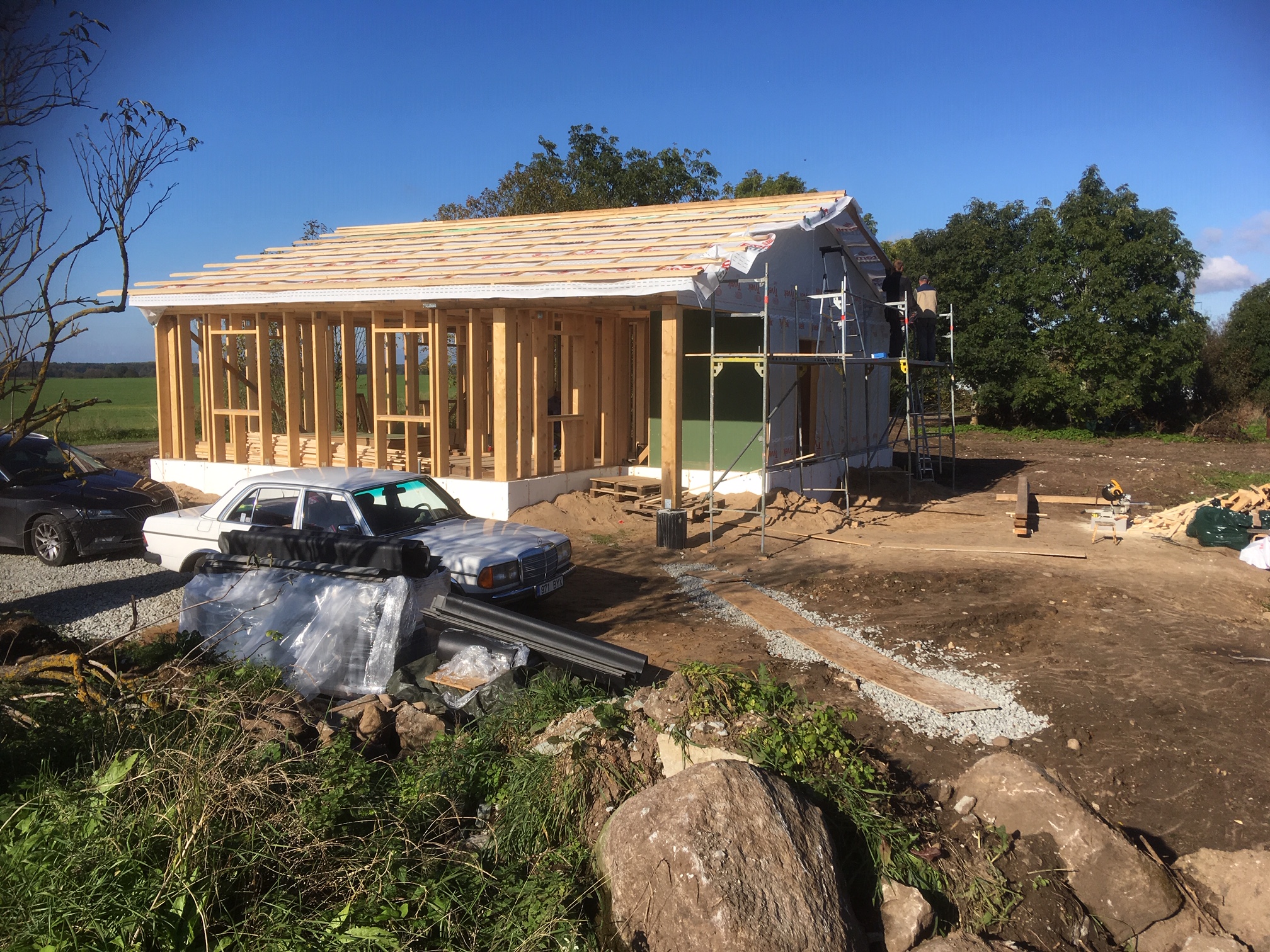 Ühekordse viilkatusega uue puitmaja ehitustööde jätkamine. Olemas on maja välisseinte ja siseseinte karkass, betoonpõrand põrandaküttetorudega valatud, katuse aluskile on paigaldatud. Vaja teostada jätkuvad tööd võtmed kätte lahenduseni ehk: