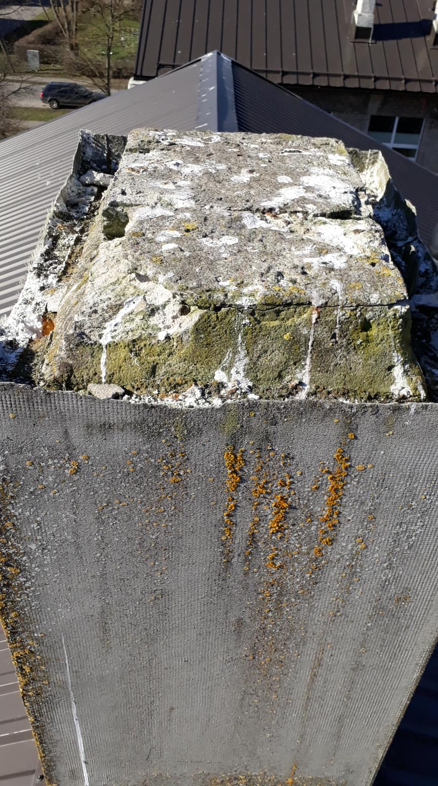 Ventilatsioonikorstnale on vaja valmistada ja paigaldada uus lehtmetallist kate. Fotodel näha ilma katteta venitaltsioonikorsten ning teine korsten, millel kate peal on. Uus kate võiks olla sarnane teise korstna kattele. Maja on kahekorruseline, pääs katusele on pööningult.